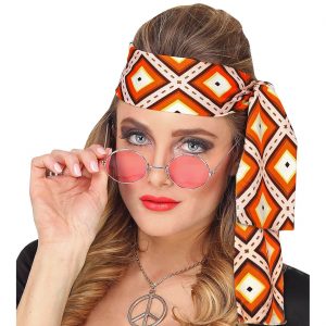 70er Jahre Hippie Stirnband Groovy Rhombus orange-bunt