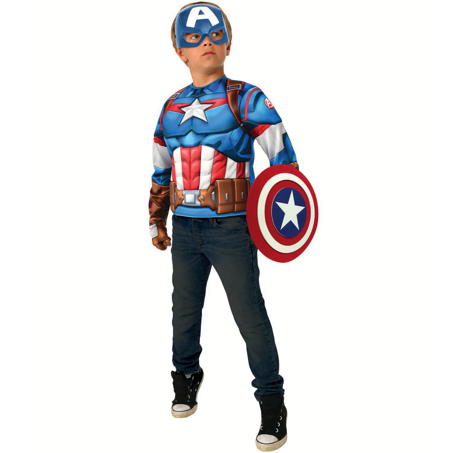 Superheld Captain America Kinderkostüm Teile-Set Muskel-Shirt+Maske-Schild blau-rot – (ARTIKEL/REFERNZ: 048229007738/RUG40332OS – Kategorie/Suche: Marvel DC Disney Comics – Hersteller: Rubies Deutschland GmbH)