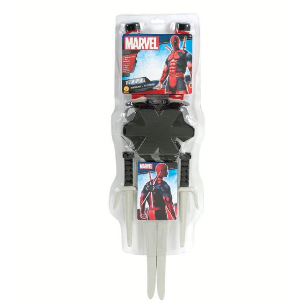 Superheld Deadpool Klingenwaffen Set Rucksack mit 2 Ninjaschwertern und 2 Saigabeln rot-schwarz – (ARTIKEL/REFERNZ: 082686360678/RU36067 – Kategorie/Suche: Marvel DC Disney Comics – Hersteller: Rubies Deutschland GmbH)