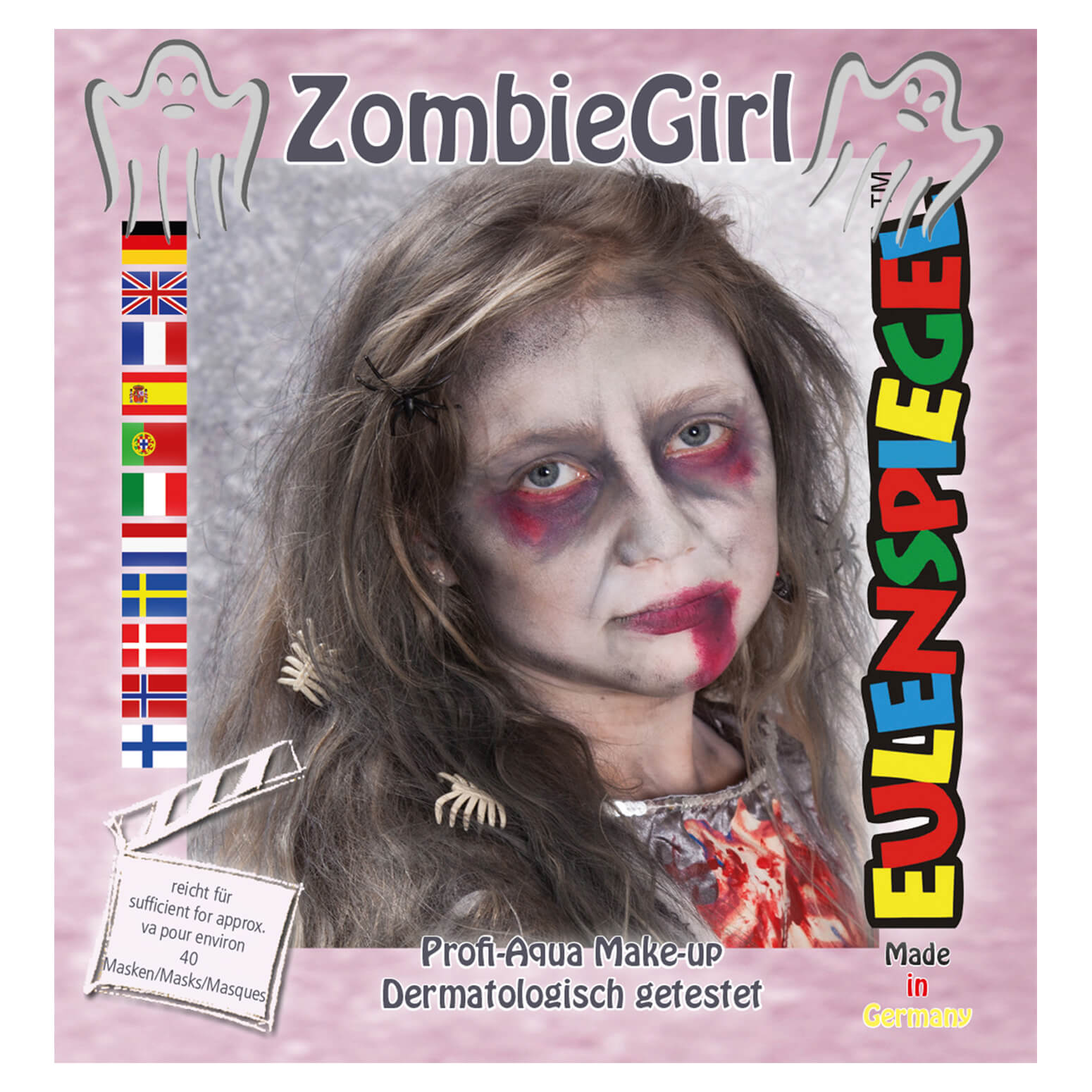 Zombie Wasserschminke Profiqualität Motivset von Eulenspiegel ZOMBIE GIRL Alabaster+Schwarz+M.Grau+K.Rot E-bunt