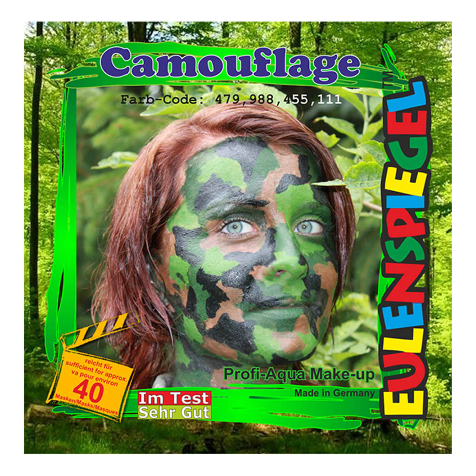 Armee Soldaten Wasserschminke Profiqualität Motivset von Eulenspiegel CAMOUFLAGE Schw.+Braun+Dunkelgrün+Moosgrün E-bunt