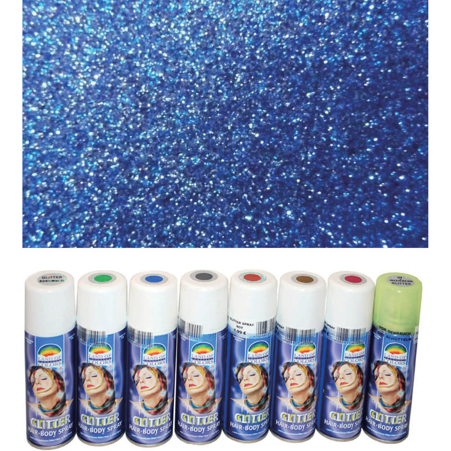 Haarspray und Bodyspray Glitzer metallic blau