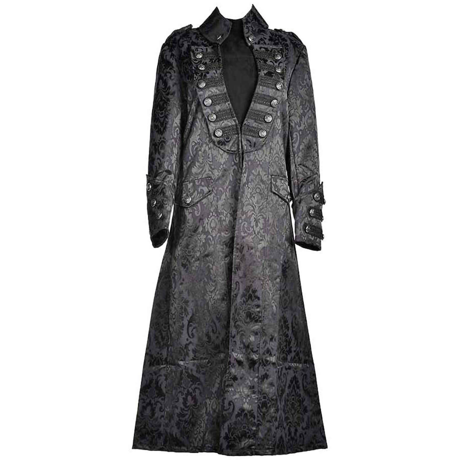 Vampir/Edelherr Gothic Military Kostüm Mantel aus Brokat schwarz-silber – (ARTIKEL/REFERNZ: 5050175112959/JD11295-5050175112935/JD11293-5050175112911/JD11291-5050175105111/JD10511 – Kategorie/Suche: – Hersteller: Cleopatra Trading Limited)