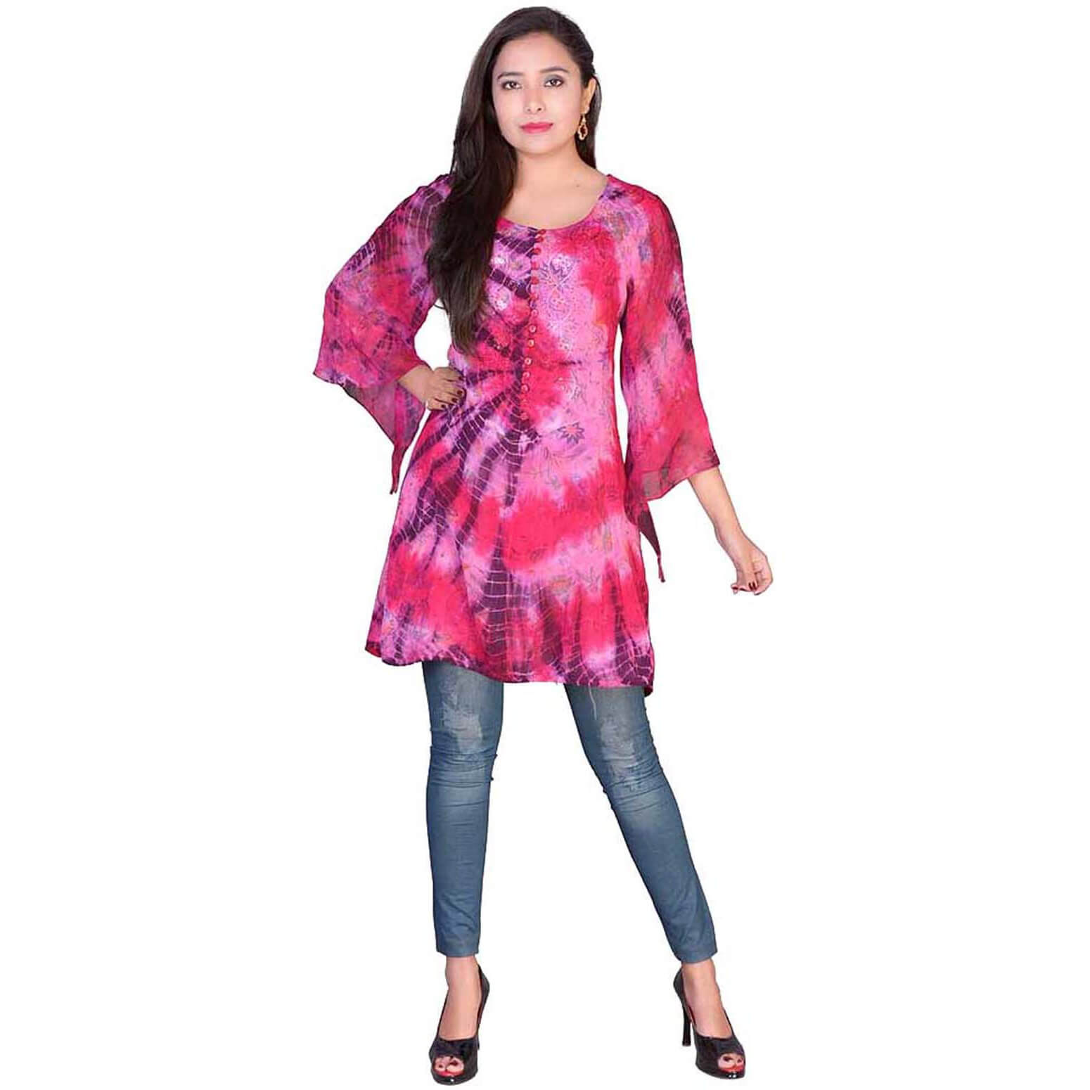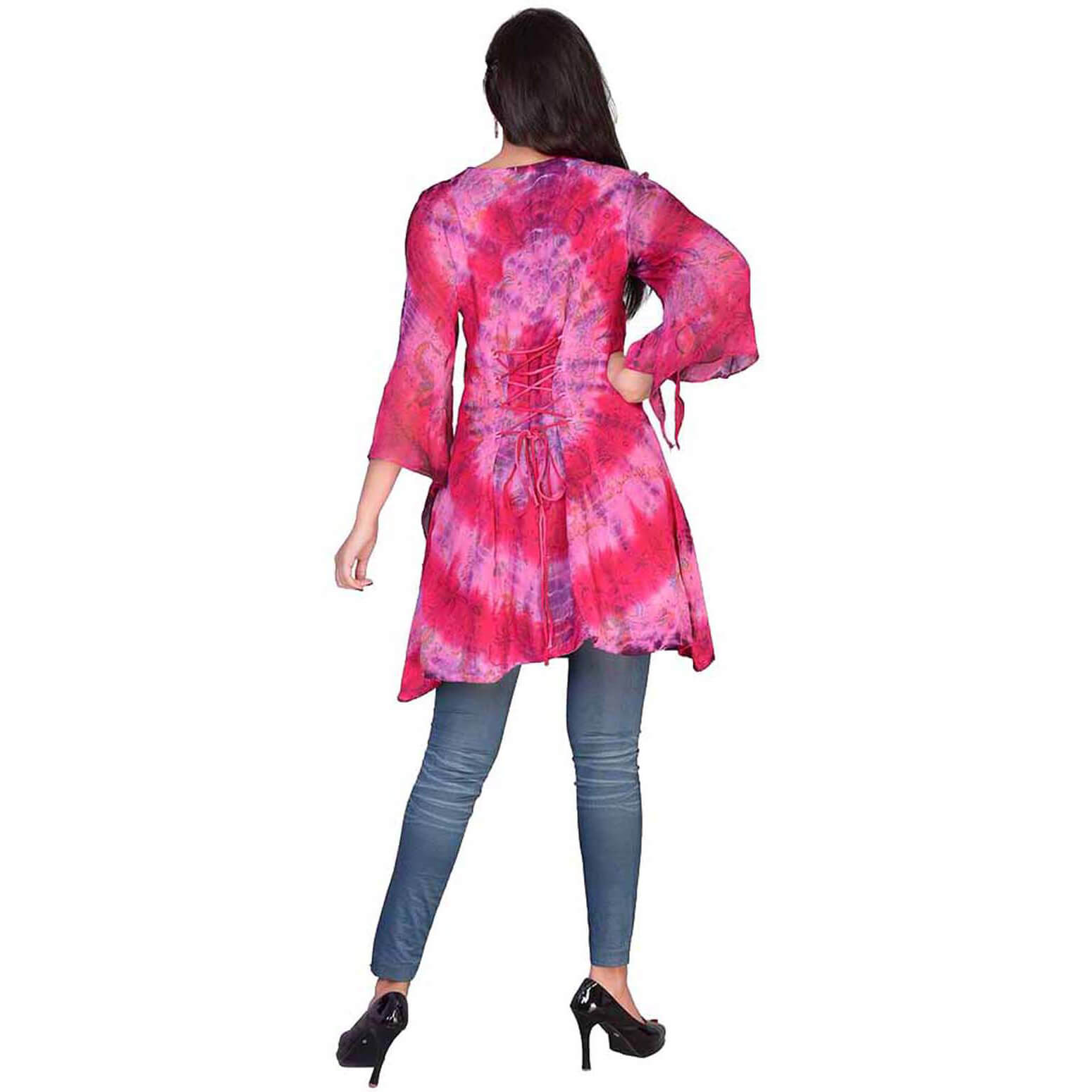 70er Jahre Hippiegirl Hemd Bluse Tunika Batik mit Zipfeln hinten geschnürt PINK pink-rosa – (ARTIKEL/REFERNZ: 5050175121296/JD12129-5050175121319/JD12131 – Kategorie/Suche: – Hersteller: Cleopatra Trading Limited)
