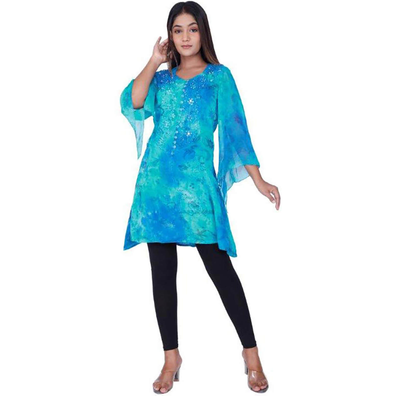 70er Jahre Hippiegirl Hemd Bluse Tunika Batik mit Zipfeln hinten geschnürt TURQUOISE türkis – (ARTIKEL/REFERNZ: 5050175126529/JD12652 – Kategorie/Suche: – Hersteller: Cleopatra Trading Limited)