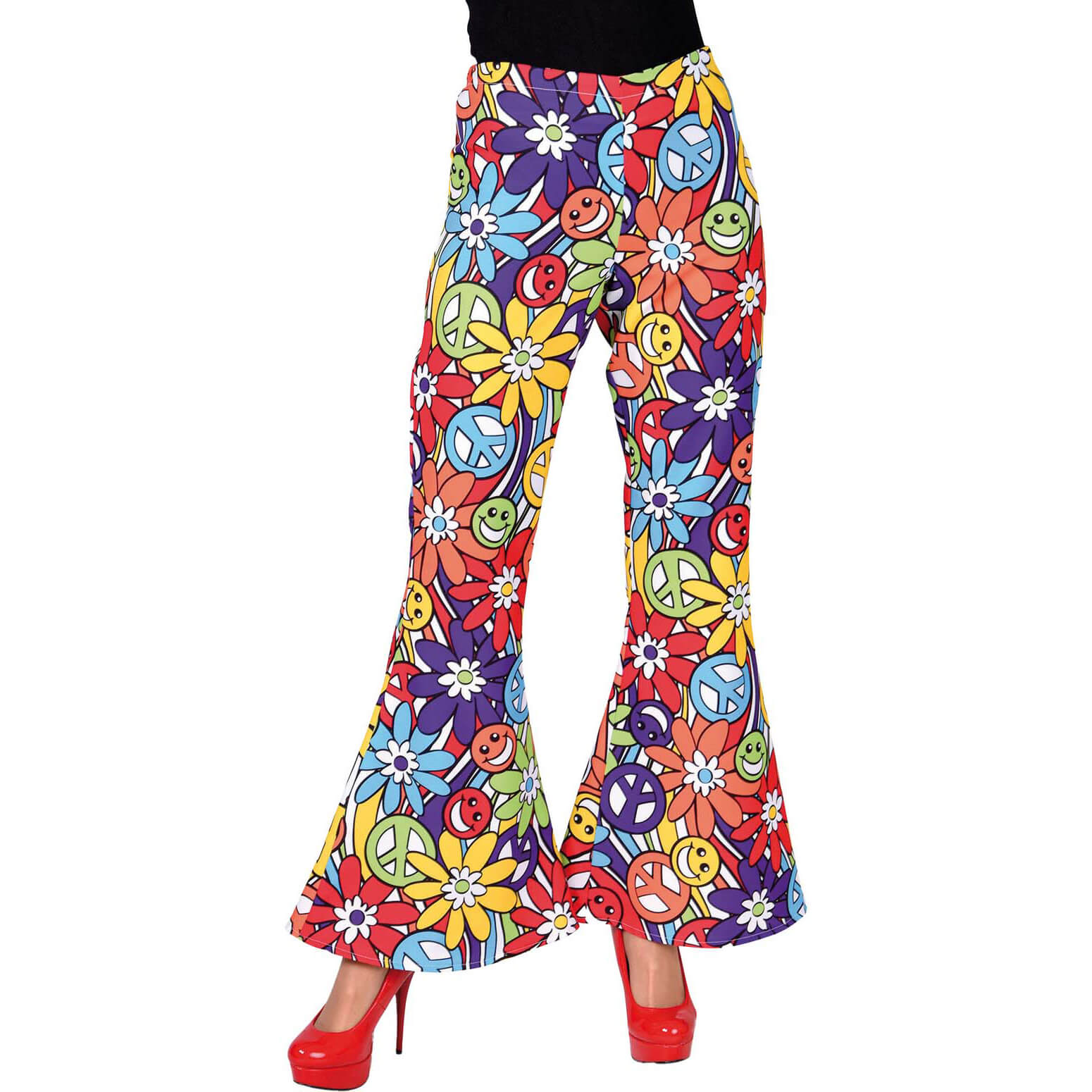 70er Jahre Hippies Schlaghose lang Motiv Hippie Smiley Deluxe für Damen bunt
