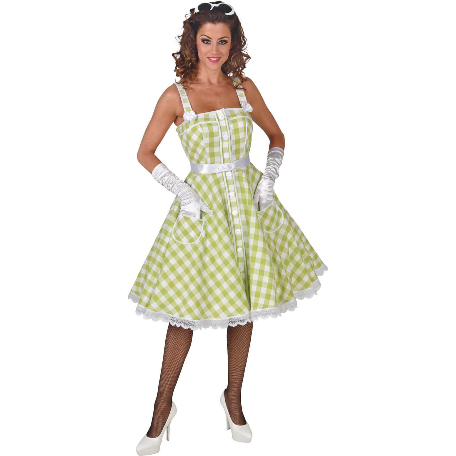 50er Jahre Rock ’n Roll Kostüm Kleid kurz Rockabilly kariert mit Trägern LIME Deluxe hellgrün-weiß – (ARTIKEL/REFERNZ: 5414349585428/FF220110XS-5414349585435/FF220110S-5414349585442/FF220110M-5414349585459/FF220110L-5414349585466/FF220110XL-5414349585473/FF220110XXL – Kategorie/Suche: – Hersteller: ESPA NV)