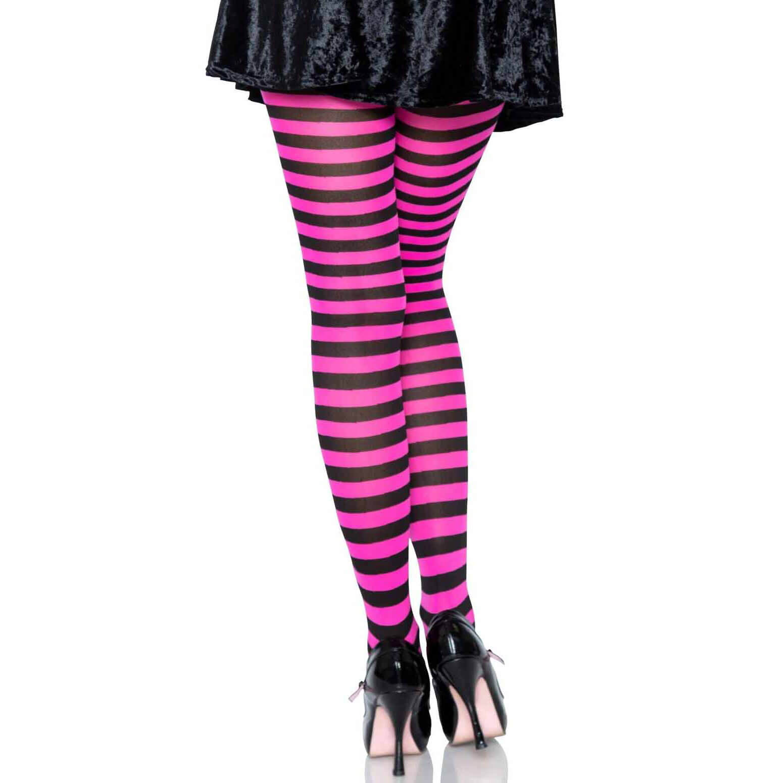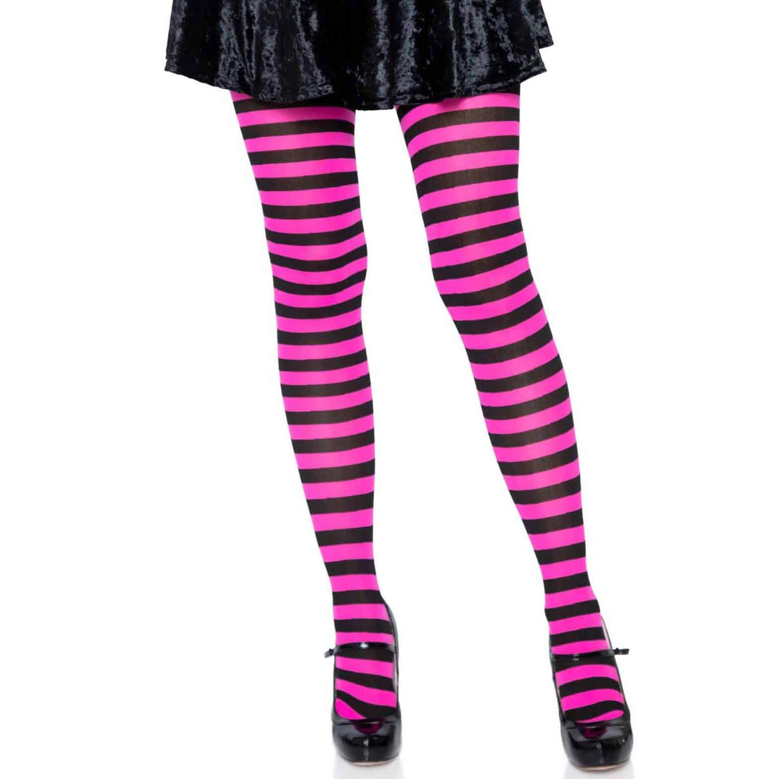 Ringelstrumpfhose Nylon gestreift zweifarbig schwarz-neonpink – (ARTIKEL/REFERNZ: 714718006468/LA7100BKNP – Kategorie/Suche: – Hersteller: Leg Avenue Europe)