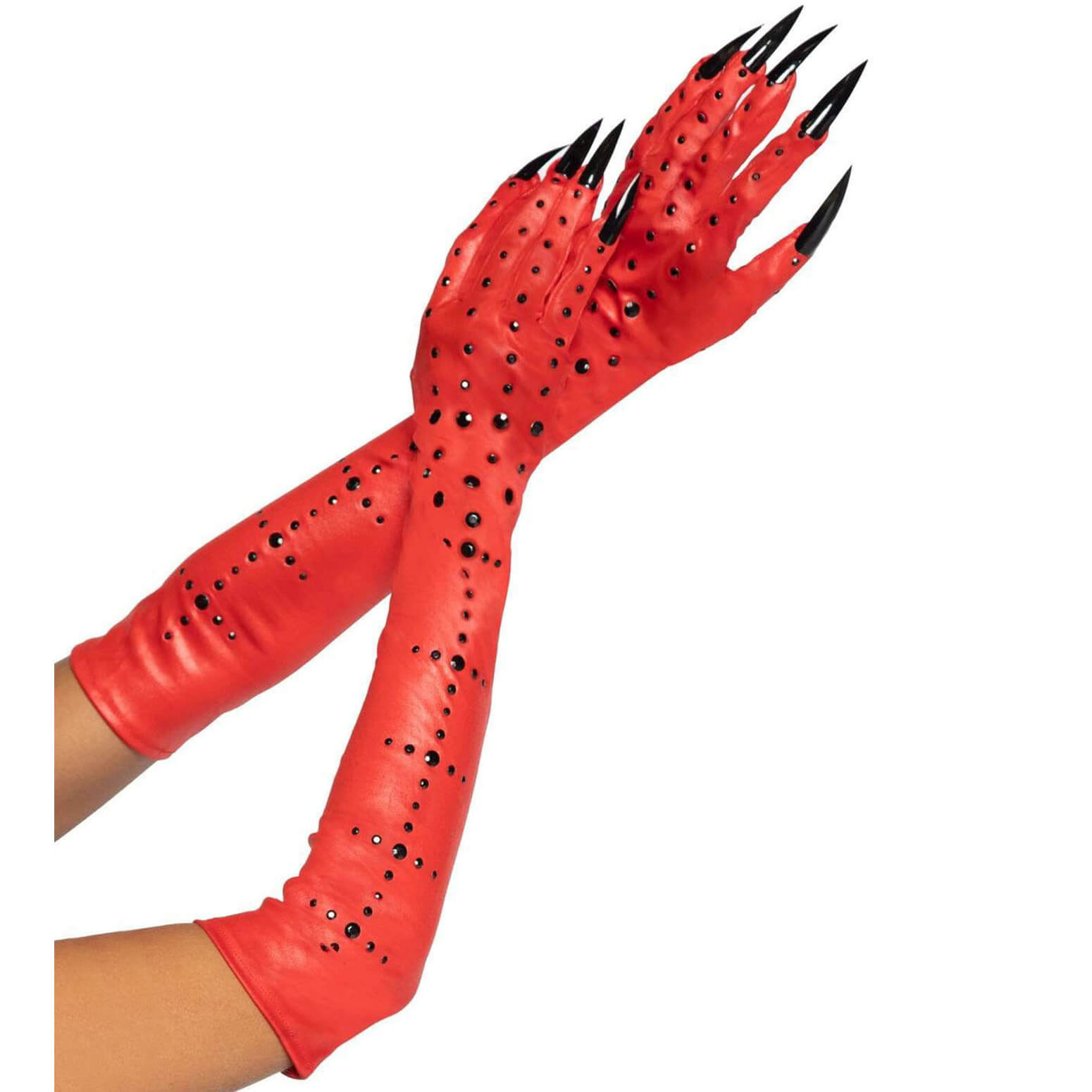 Teufel / Dämon Motivhandschuhe lang mit Krallen und Strasssteinen rot-schwarz