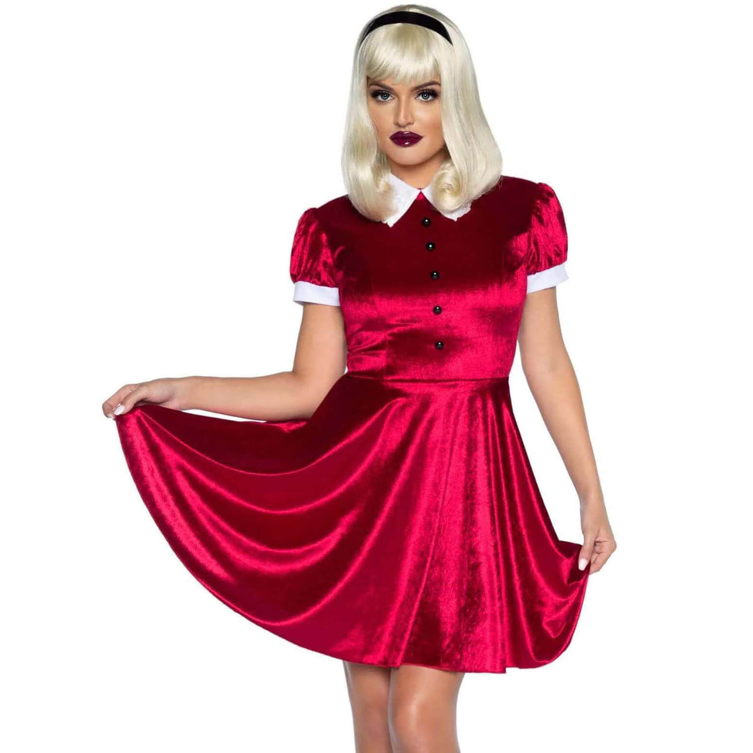 Hexe Chilling Teenage Kostüm Kleid kurz SPELLBINDING WITCH aus Samt rot – (ARTIKEL/REFERNZ: 714718551524/LA86901S-714718551531/LA86901M-714718551548/LA86901L – Kategorie/Suche: Chilling Adventures of Sabrina – Hersteller: Leg Avenue Europe)