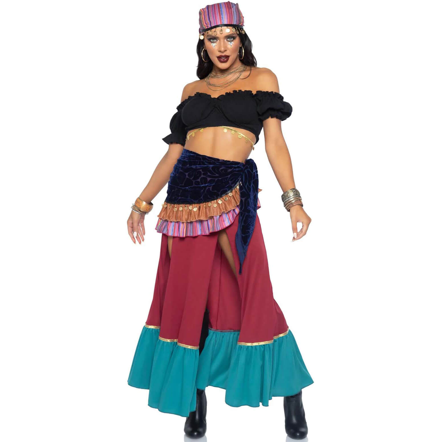Gipsy Zigeunerin Kostüm Kleid lang CRYSTAL BALL BEAUTY bunt – (ARTIKEL/REFERNZ: 714718557830/LA86997S-714718557847/LA86997M-714718557854/LA86997L – Kategorie/Suche: Zigeunerin – Hersteller: Leg Avenue Europe)