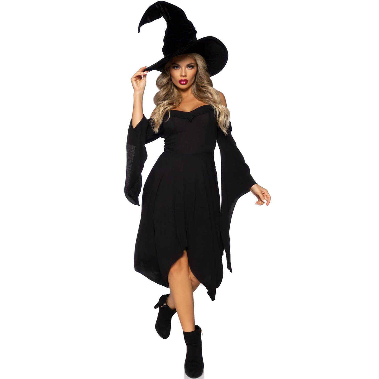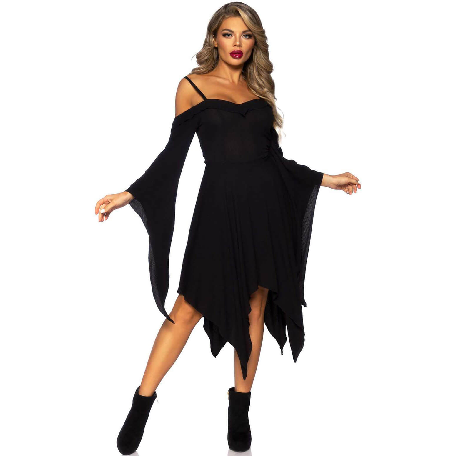 Vampirin/Hexe Kostüm Kleid halblang COTTON BELL SLEEVED DRESS schwarz – (ARTIKEL/REFERNZ: 714718562681/LA87117BKS-714718562698/LA87117BKM-714718562704/LA87117BKL-714718562711/LA87117BKXL – Kategorie/Suche: – Hersteller: Leg Avenue Europe)