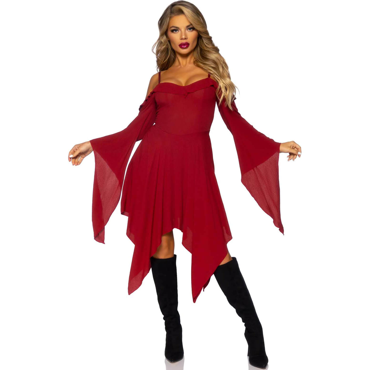 Vampirin/Hexe Kostüm Kleid halblang COTTON BELL SLEEVED DRESS dunkelrot – (ARTIKEL/REFERNZ: 714718562766/LA87117BYS-714718562773/LA87117BYM-714718562780/LA87117BYL-714718562797/LA87117BYXL – Kategorie/Suche: – Hersteller: Leg Avenue Europe)