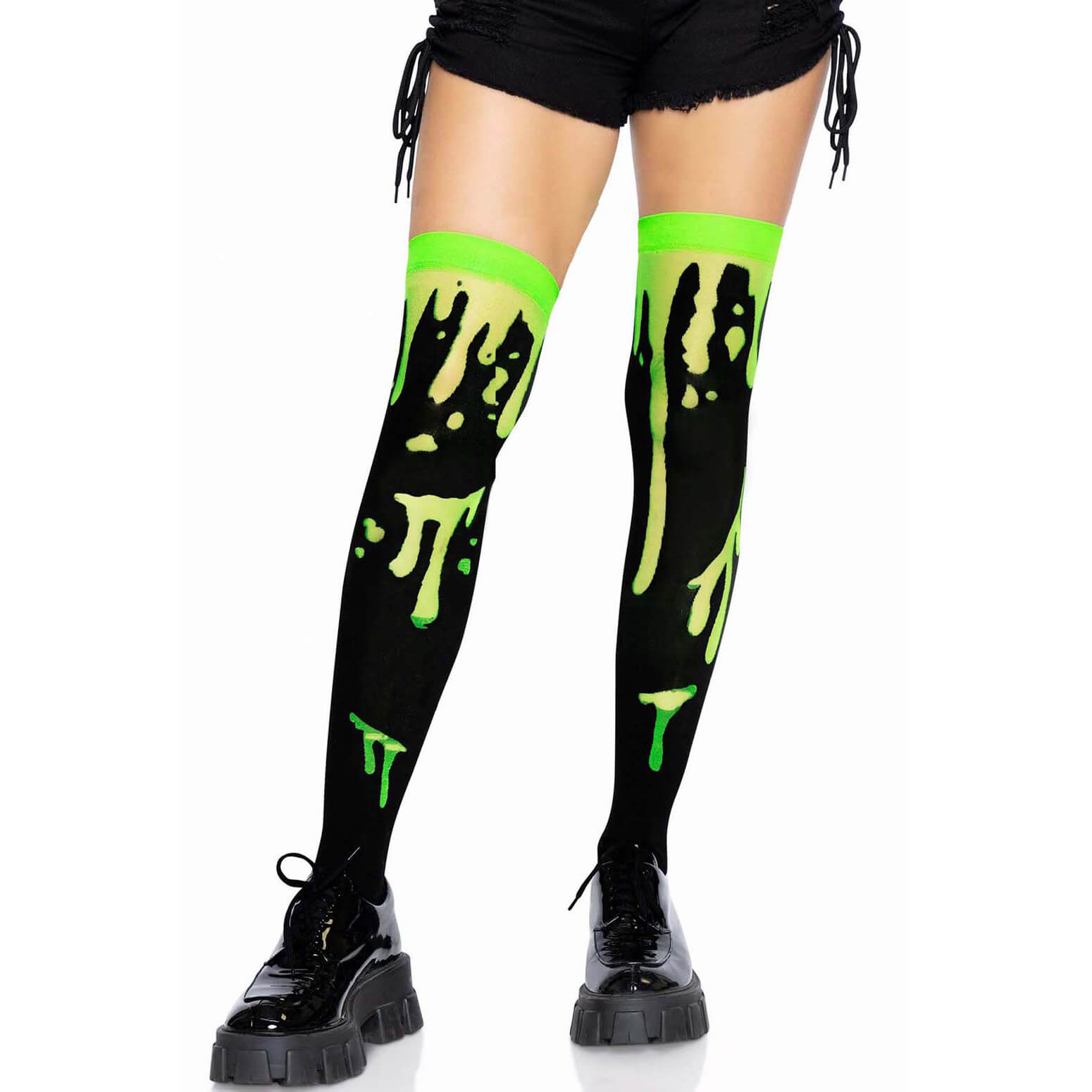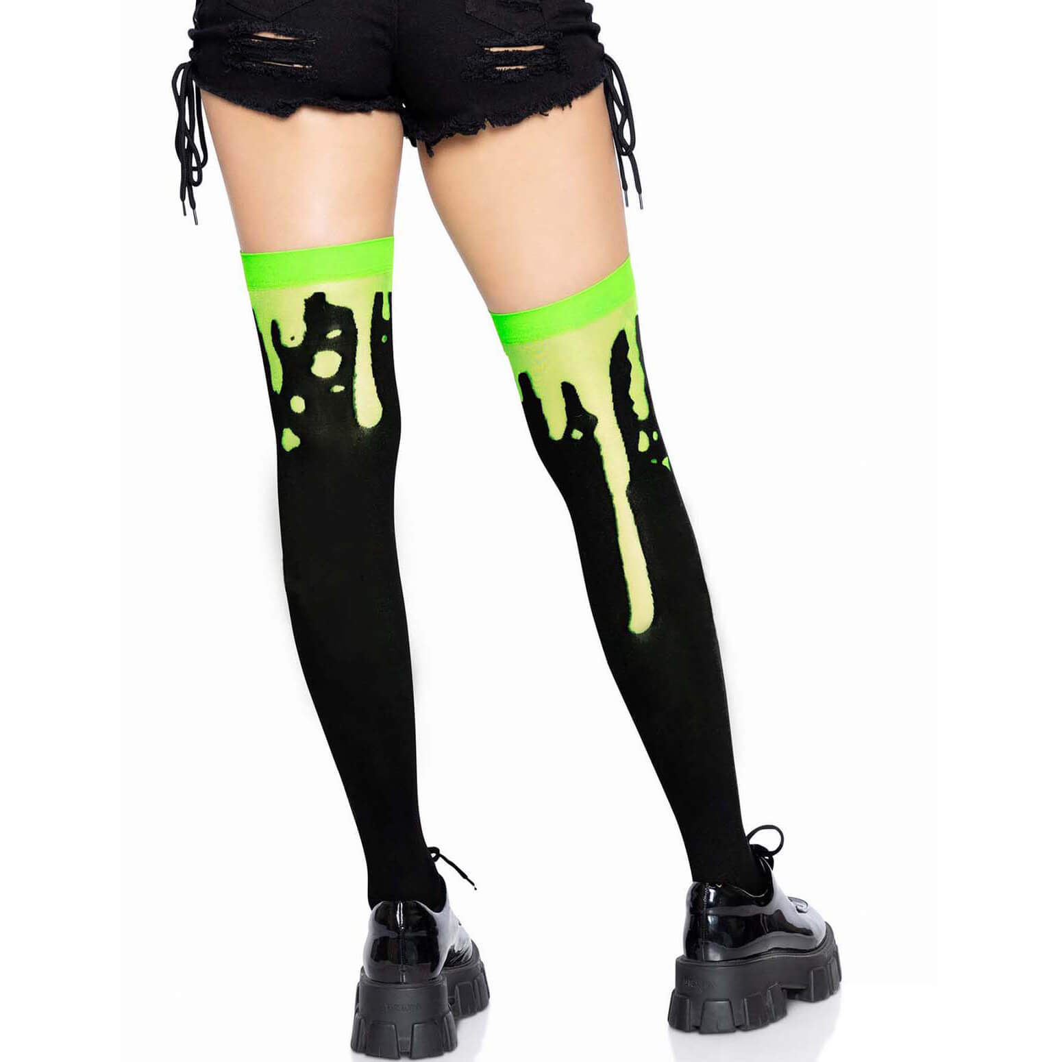 Alien/Beast Motivstrümpfe Overknees zum Strapsen oder als Halterlose schwarz-neongrün – (ARTIKEL/REFERNZ: 714718565859/LA6639GR – Kategorie/Suche: – Hersteller: Leg Avenue Europe)