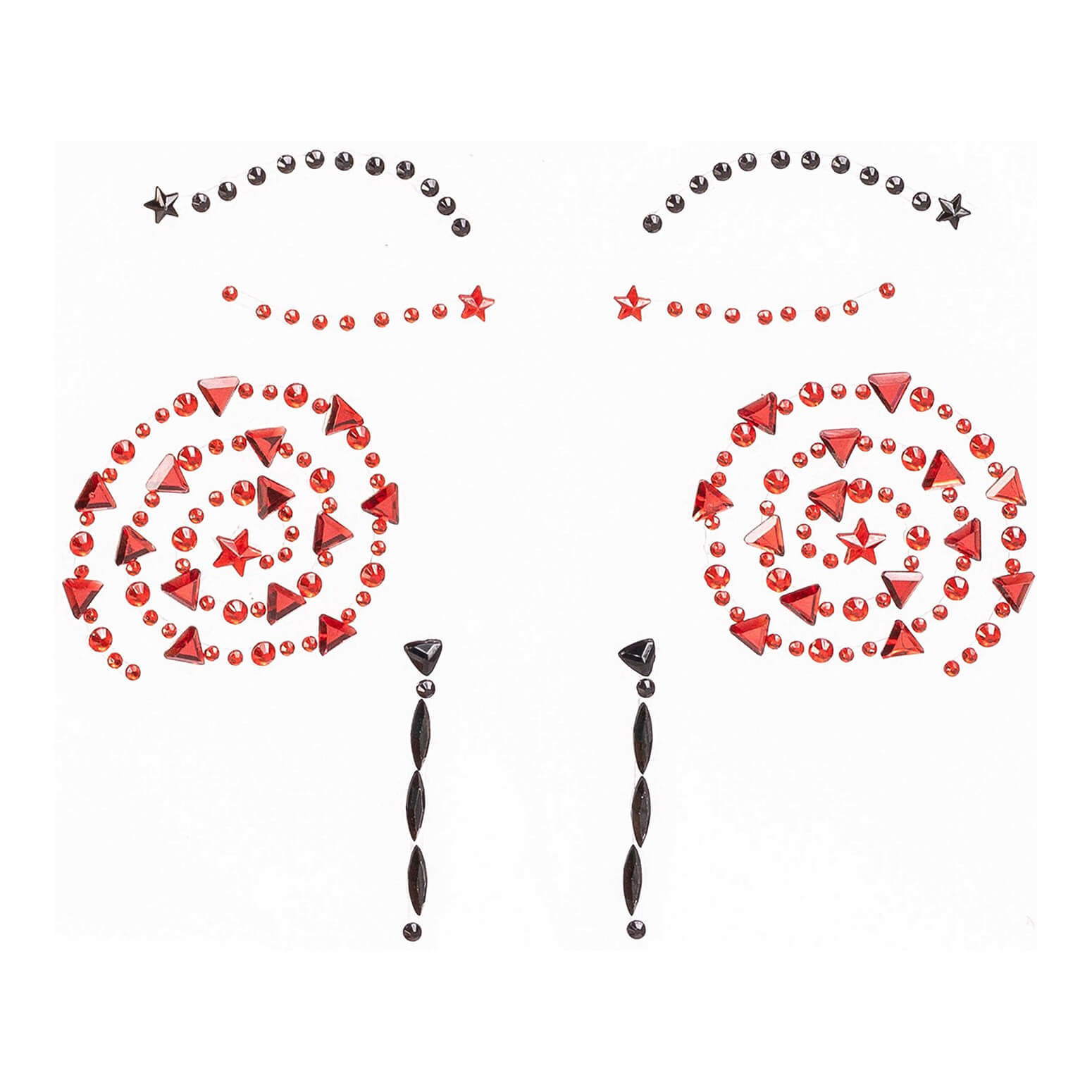 Killerpuppe Kettensäge Schmucksteine Gesicht Set PUPPET auf Folie selbstklebend rot-schwarz