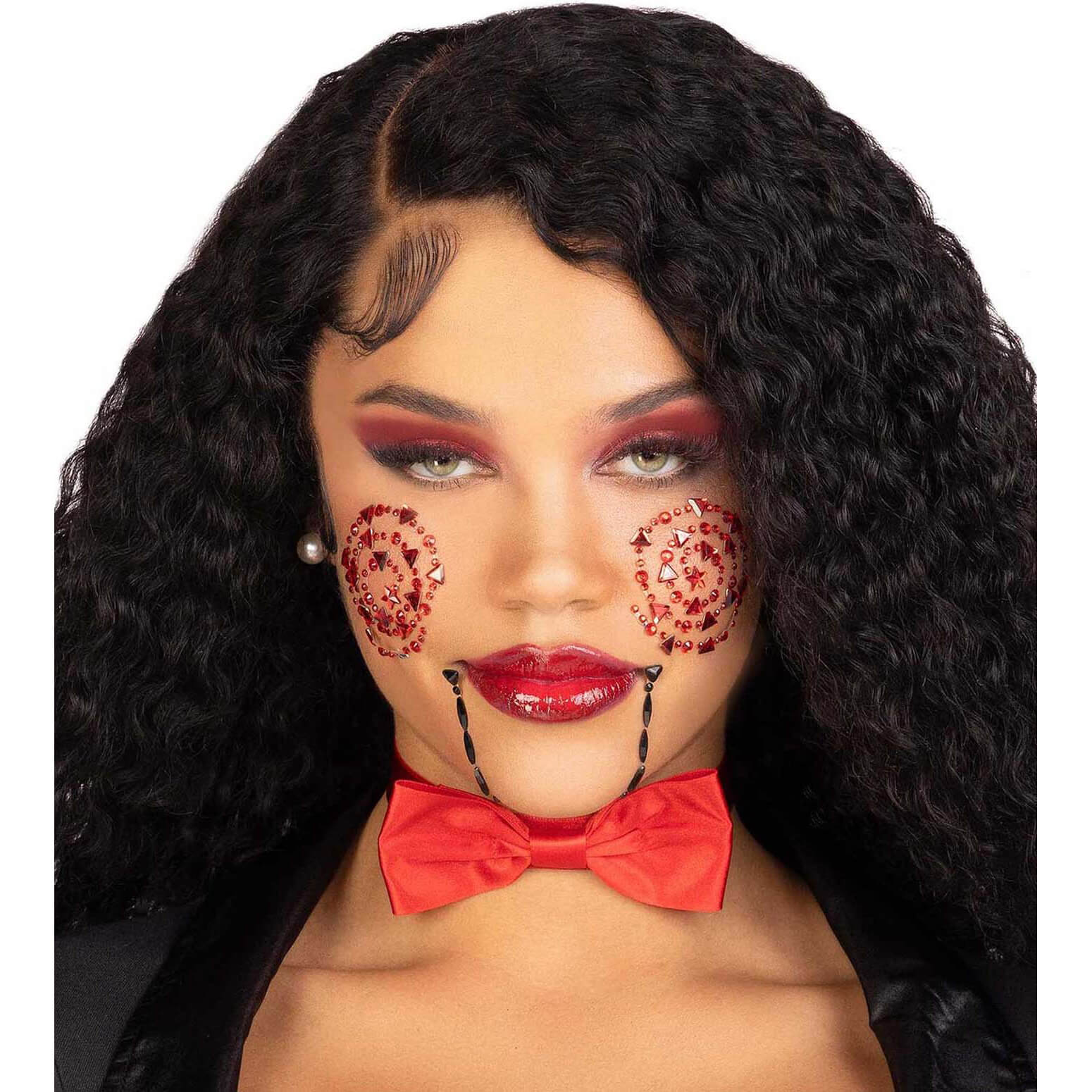 Killerpuppe Kettensäge Schmucksteine Gesicht Set PUPPET auf Folie selbstklebend rot-schwarz – (ARTIKEL/REFERNZ: 714718566849/LAEYE049 – Kategorie/Suche: Saw Jigsaw Saw Pig Schwein – Hersteller: Leg Avenue Europe)