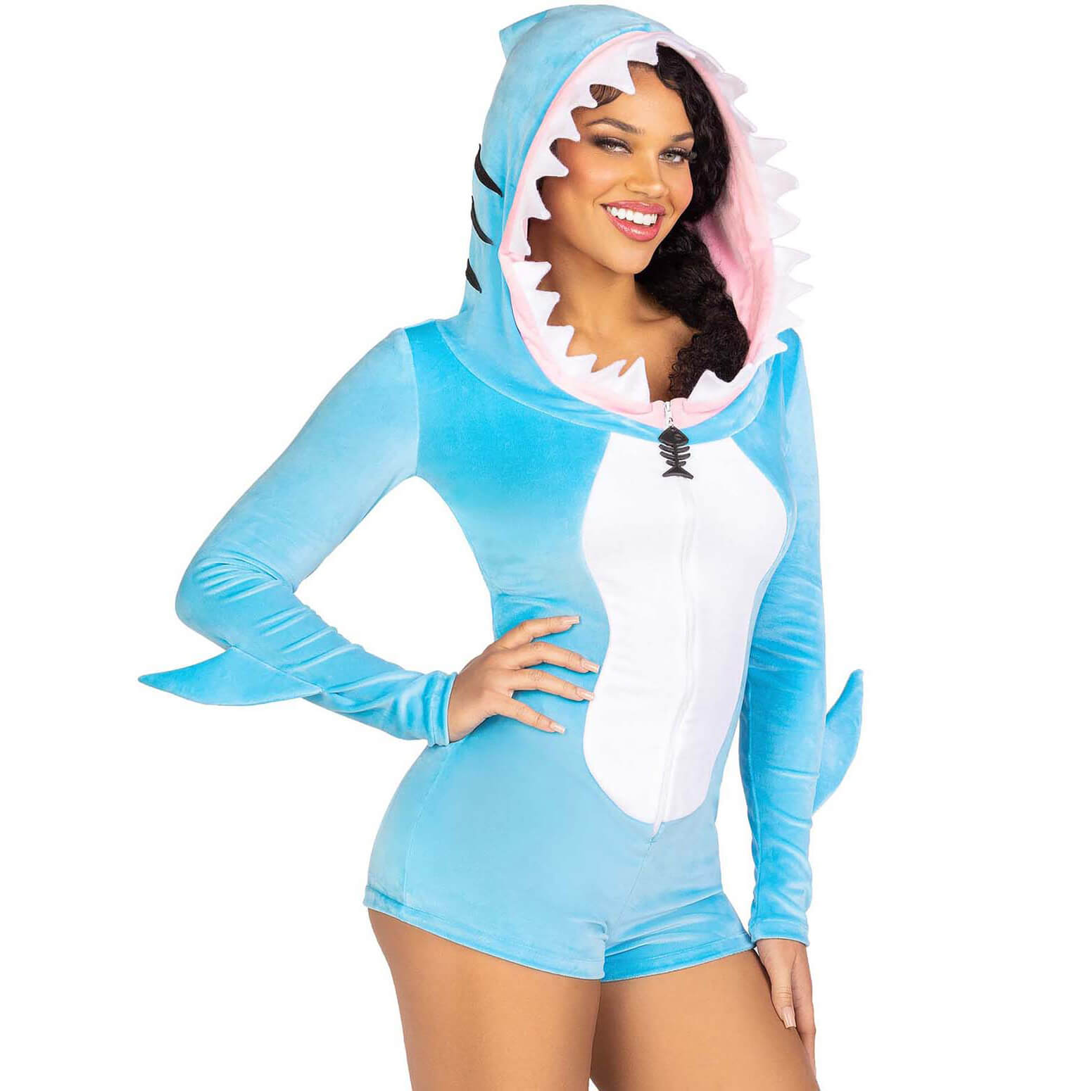 Wassertier Fisch Hai Kostüm Overall kurz COMFY SHARK türkis-weiß – (ARTIKEL/REFERNZ: 714718568201/LA87184XS-714718568171/LA87184S-714718568188/LA87184M-714718568195/LA87184L – Kategorie/Suche: – Hersteller: Leg Avenue Europe)