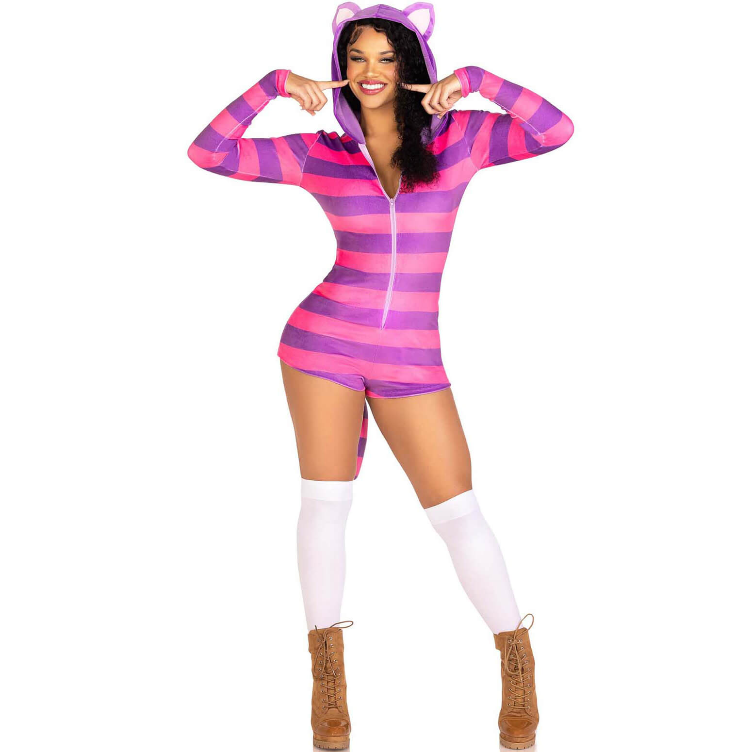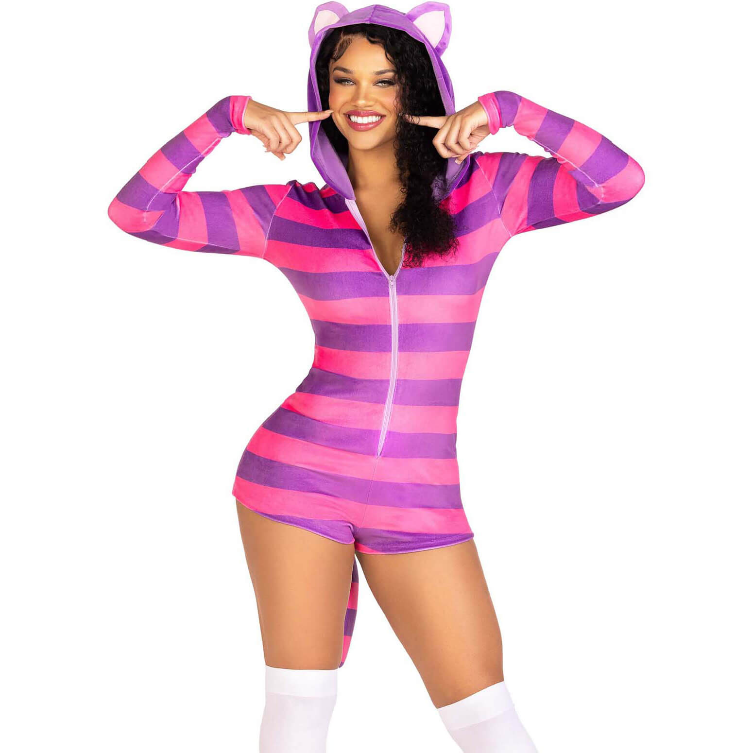 Katze Alice Kostüm Overall kurz COMFY CHESHIRE CAT lila-pink – (ARTIKEL/REFERNZ: 714718568775/LA87185XS-714718568218/LA87185S-714718568225/LA87185M-714718568232/LA87185L – Kategorie/Suche: Disney Alice im Wunderland Grinsekatze – Hersteller: Leg Avenue Europe)