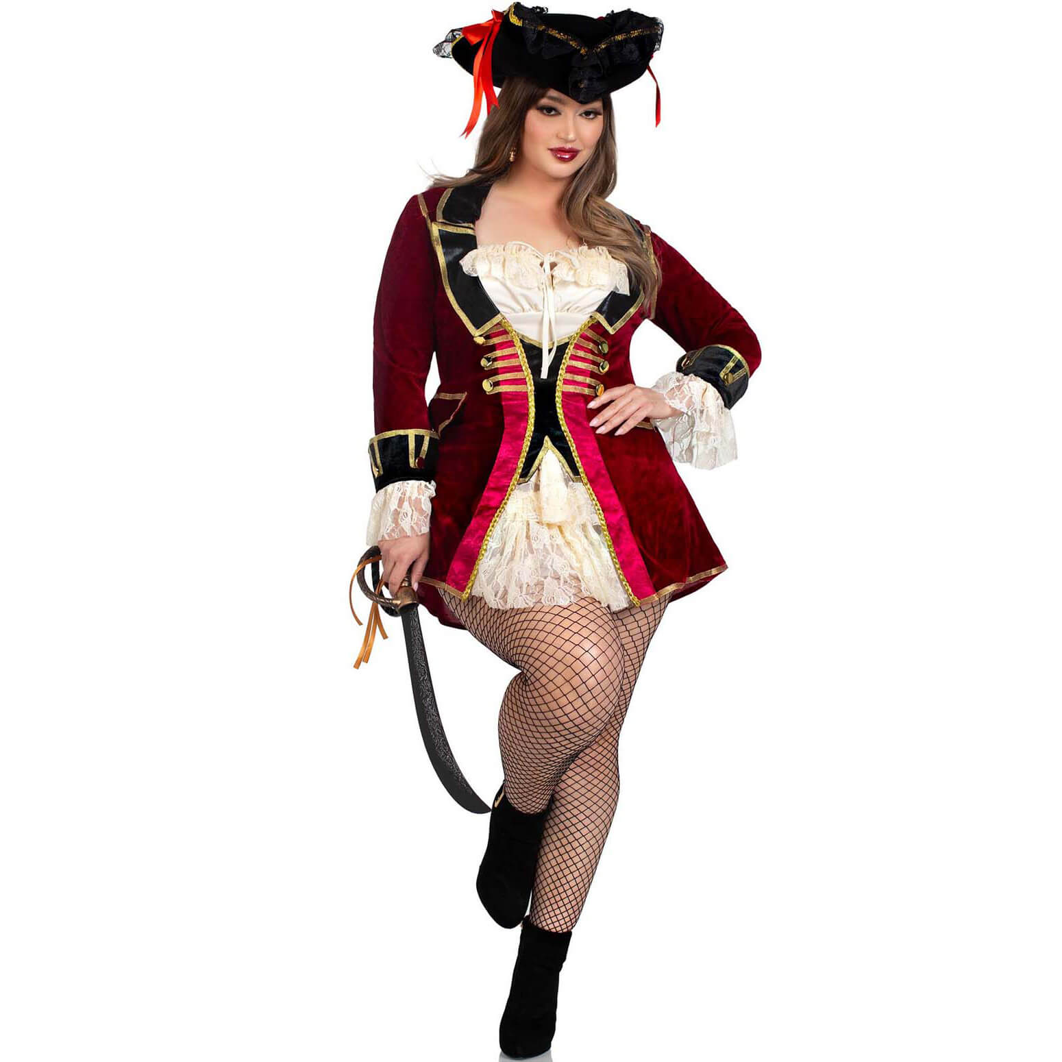 Piratin Kostüm Kleid kurz CAPTIVATING PIRATE CAPTAIN dunkelrot-creme