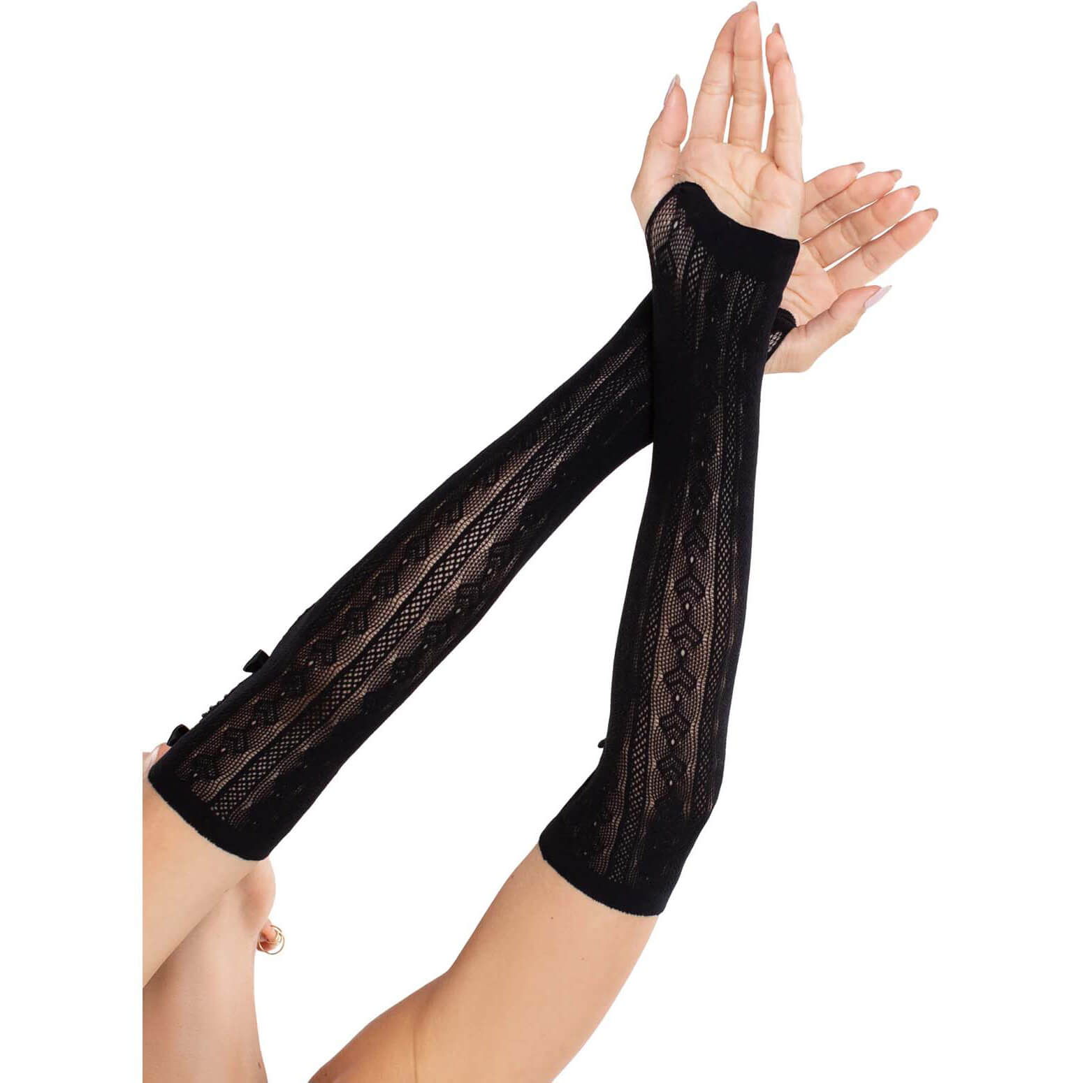 Motivhandschuhe extralang fingerlos Strick mit Schleifen und Herzen einfarbig schwarz – (ARTIKEL/REFERNZ: 714718575056/LA2046BK – Kategorie/Suche: – Hersteller: Leg Avenue Europe)