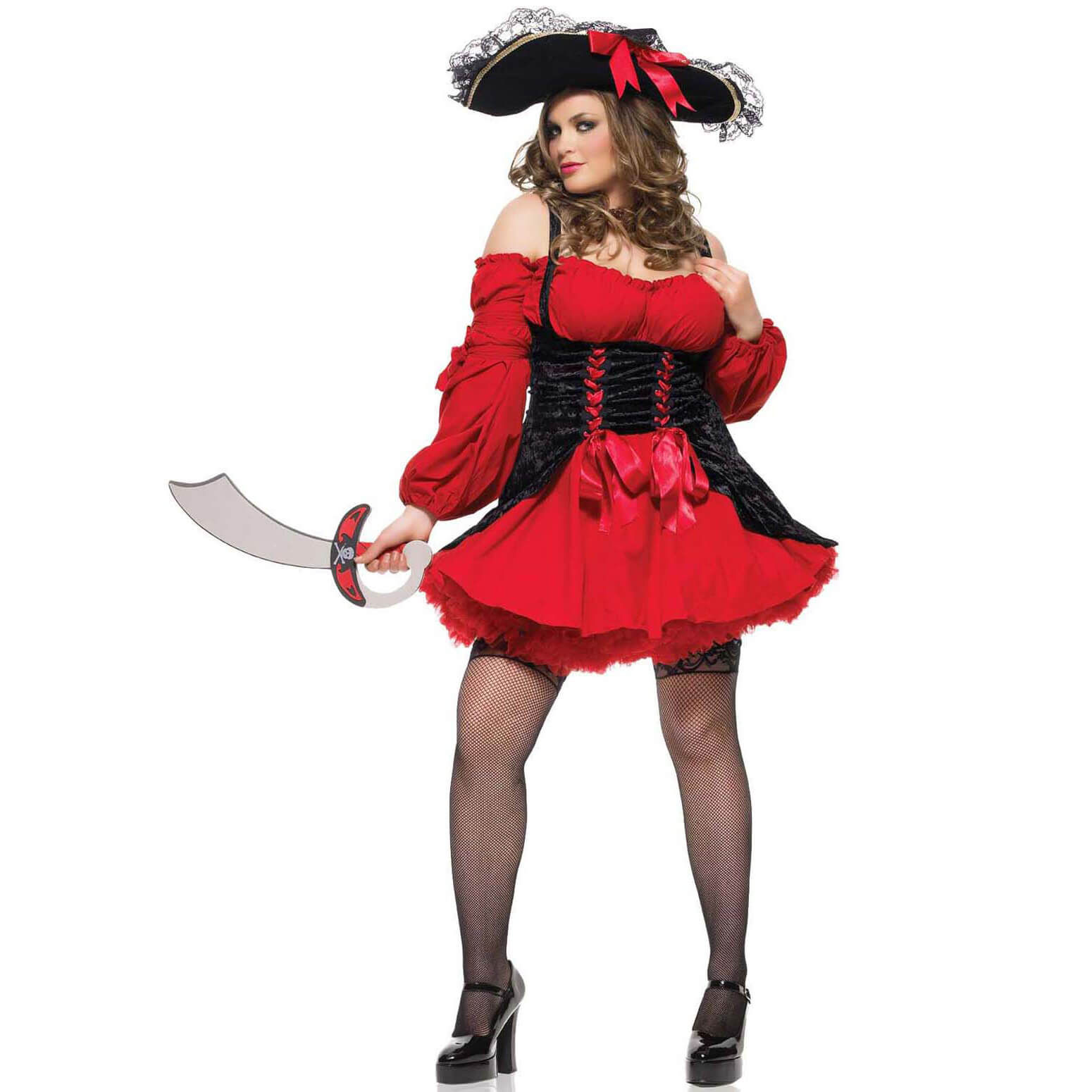 Piratin Kostüm Kleid kurz VIXEN PIRATE WENCH schwarz-rot – (ARTIKEL/REFERNZ: 714728365098/LA83157S-714728365104/LA83157M-714728365111/LA83157L-714728365128/LA83157XL-714718412634/LA83157X3X-4X – Kategorie/Suche: – Hersteller: Leg Avenue Europe)