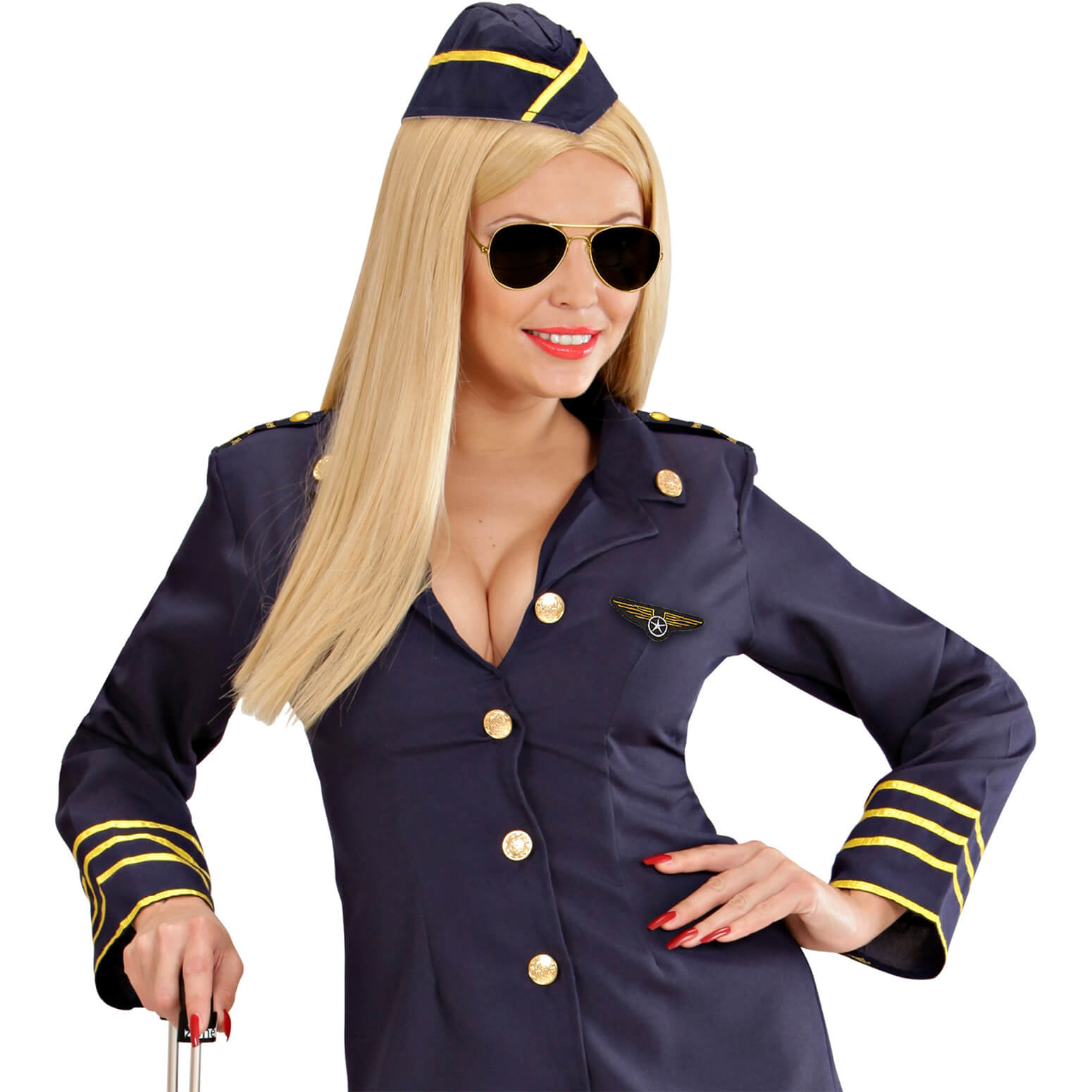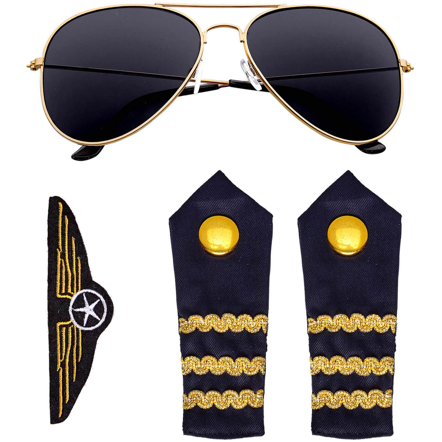 Flugkapitän Pilot Uniform Abzeichen+Brille Set Epauletten+Brosche Polizeimarke+Sonnenbrille Aviator gold-blau – (ARTIKEL/REFERNZ: 8003558000852/WI00085 – Kategorie/Suche: – Hersteller: Widmann S.r.l.)