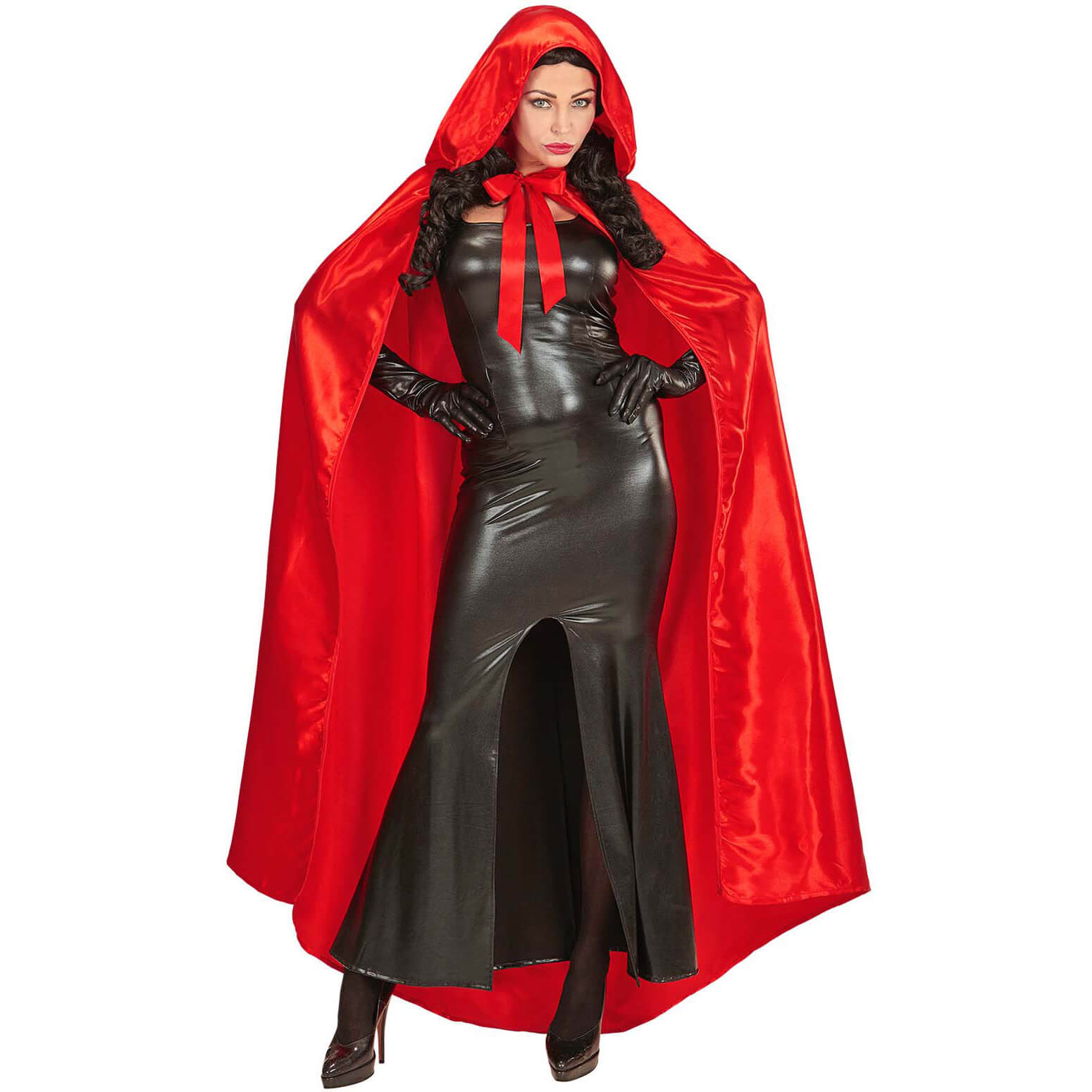 Vampire/Rotkäppchen Cape lang aus Satin mit weiter Kapuze rot – (ARTIKEL/REFERNZ: 8003558001002/WI00100 – Kategorie/Suche: – Hersteller: Widmann S.r.l.)