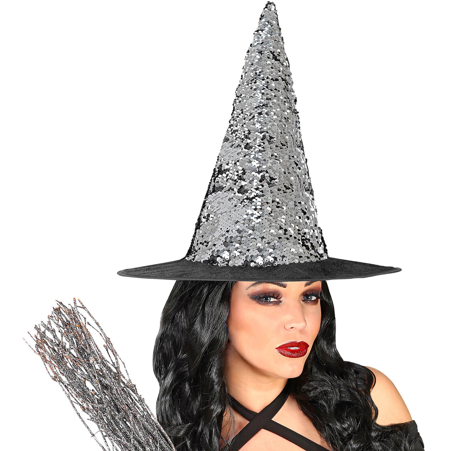 Hexen Zauberer Hexenhut aus Samt mit Wendepailletten schwarz-silber – (ARTIKEL/REFERNZ: 8003558002603/WI00260 – Kategorie/Suche: – Hersteller: Widmann S.r.l.)