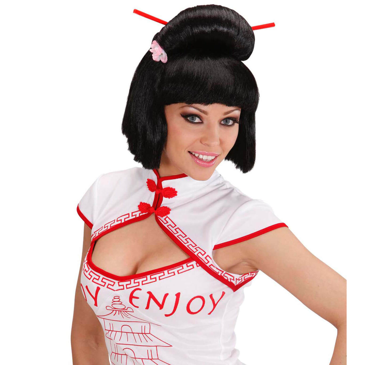 Chinesin Japanerin Hochsteckperücke kurz glatt Gei. Kurzhaarfrisur mit Dutt Pony Essstäbchen Blume Geisha schwarz – (ARTIKEL/REFERNZ: 8003558005789/WIJ0578 – Kategorie/Suche: – Hersteller: Widmann S.r.l.)