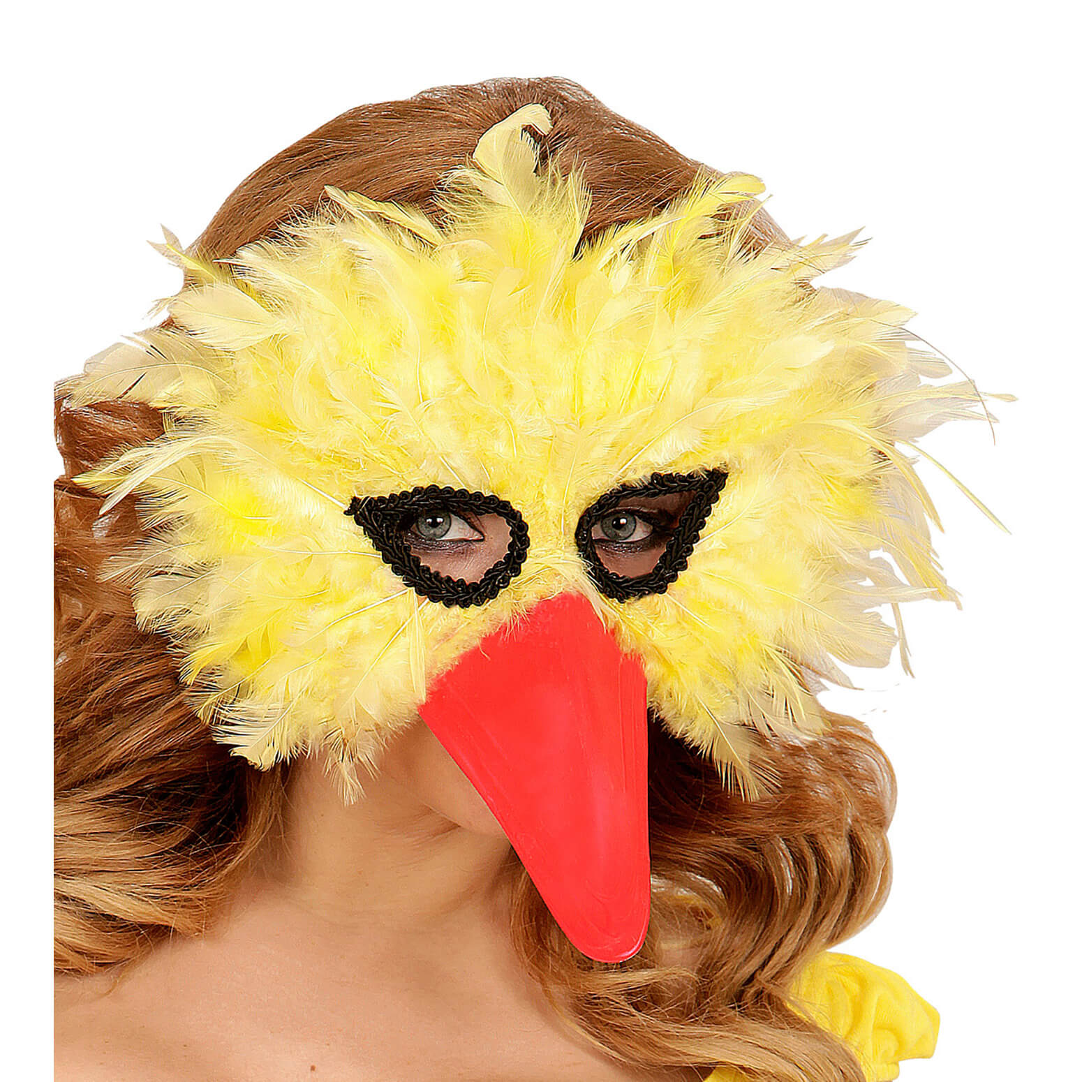 Vogel Dominomaske mit Schnabel und Federn gelb-orange – (ARTIKEL/REFERNZ: 8003558005796/WI00579 – Kategorie/Suche: – Hersteller: Widmann S.r.l.)