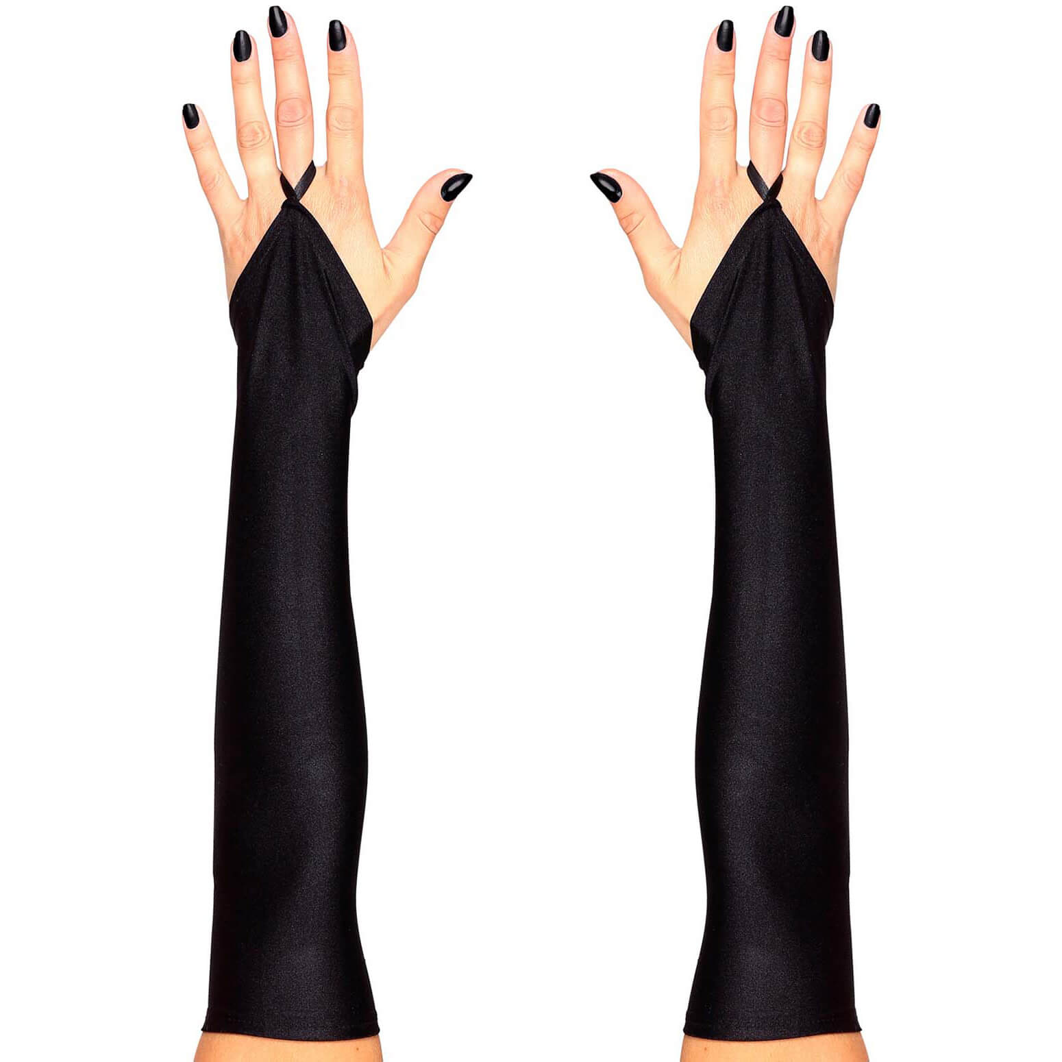 Handschuhe lang glatt fingerlos aus Satin mit Elastan einfarbig schwarz – (ARTIKEL/REFERNZ: 8003558005833/WI00583 – Kategorie/Suche: – Hersteller: Widmann S.r.l.)