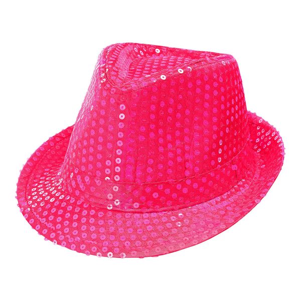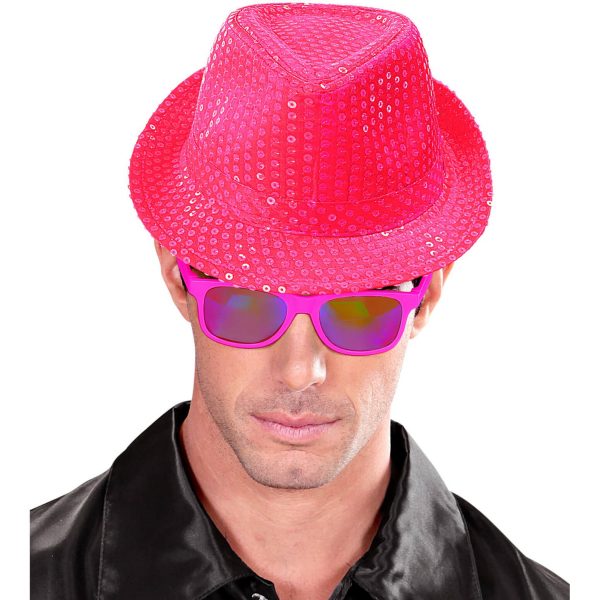 Trilbyhut schmale Krempe mit Pailletten Classic einfarbig neonpink – (ARTIKEL/REFERNZ: 8003558007806/WI0078R – Kategorie/Suche: Fedora Gangsterhut – Hersteller: Widmann S.r.l.)