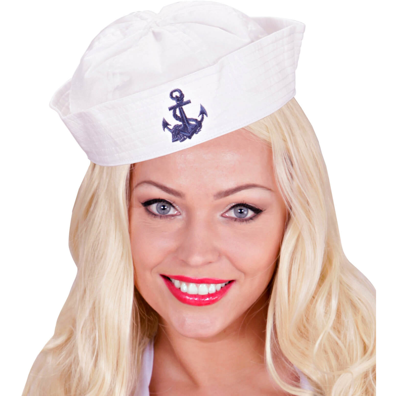Matrose Mütze mit blauem Anker gestickt weiß – (ARTIKEL/REFERNZ: 8003558008506/WI0085Y – Kategorie/Suche: – Hersteller: Widmann S.r.l.)