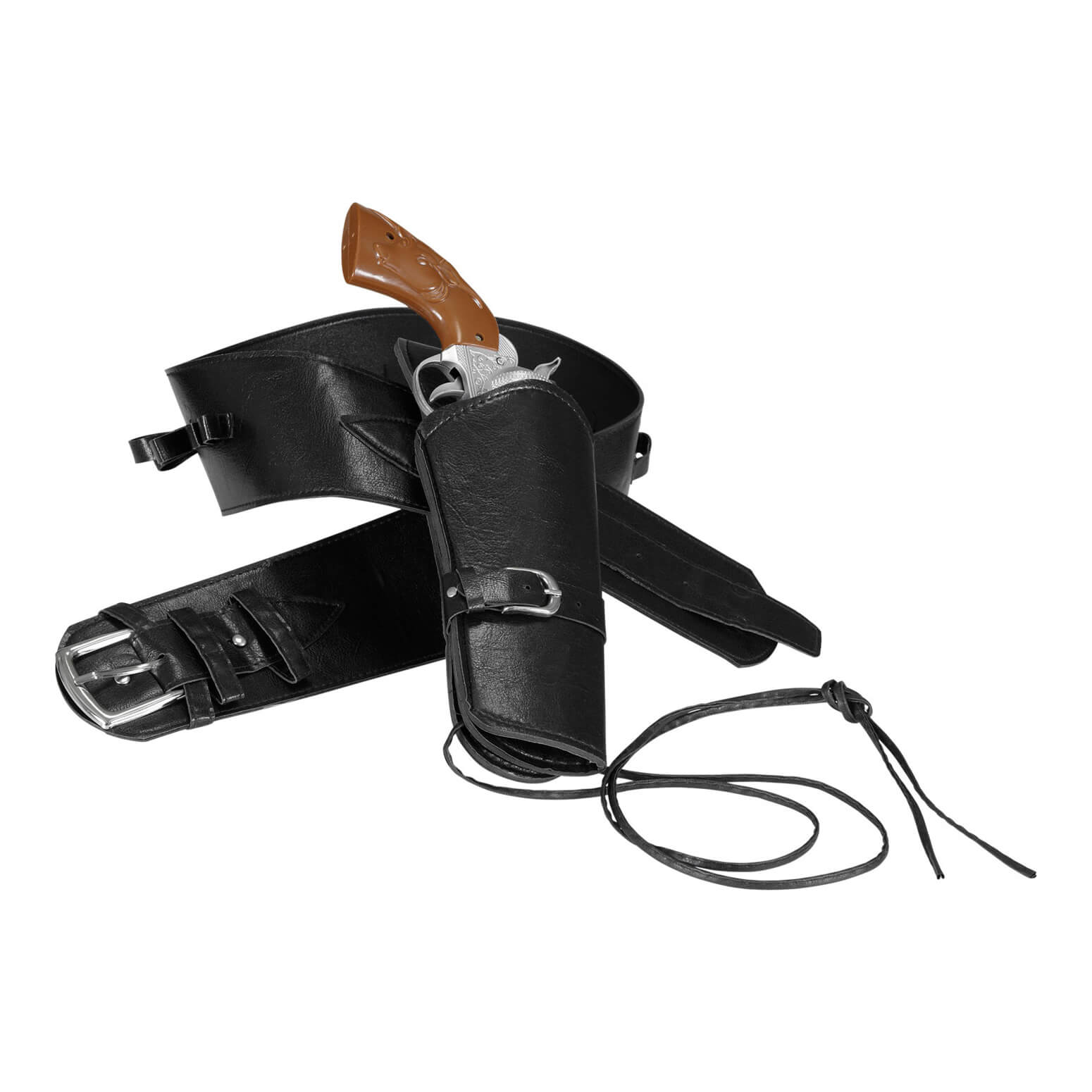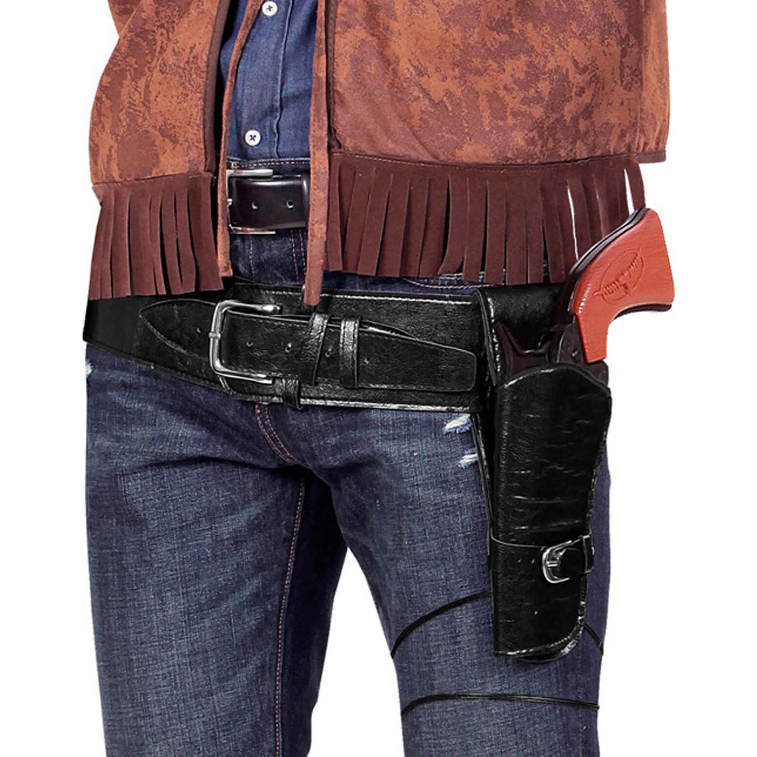Western / Polizei Gürtelholster mit einer Tasche Lederoptik Deluxe schwarz