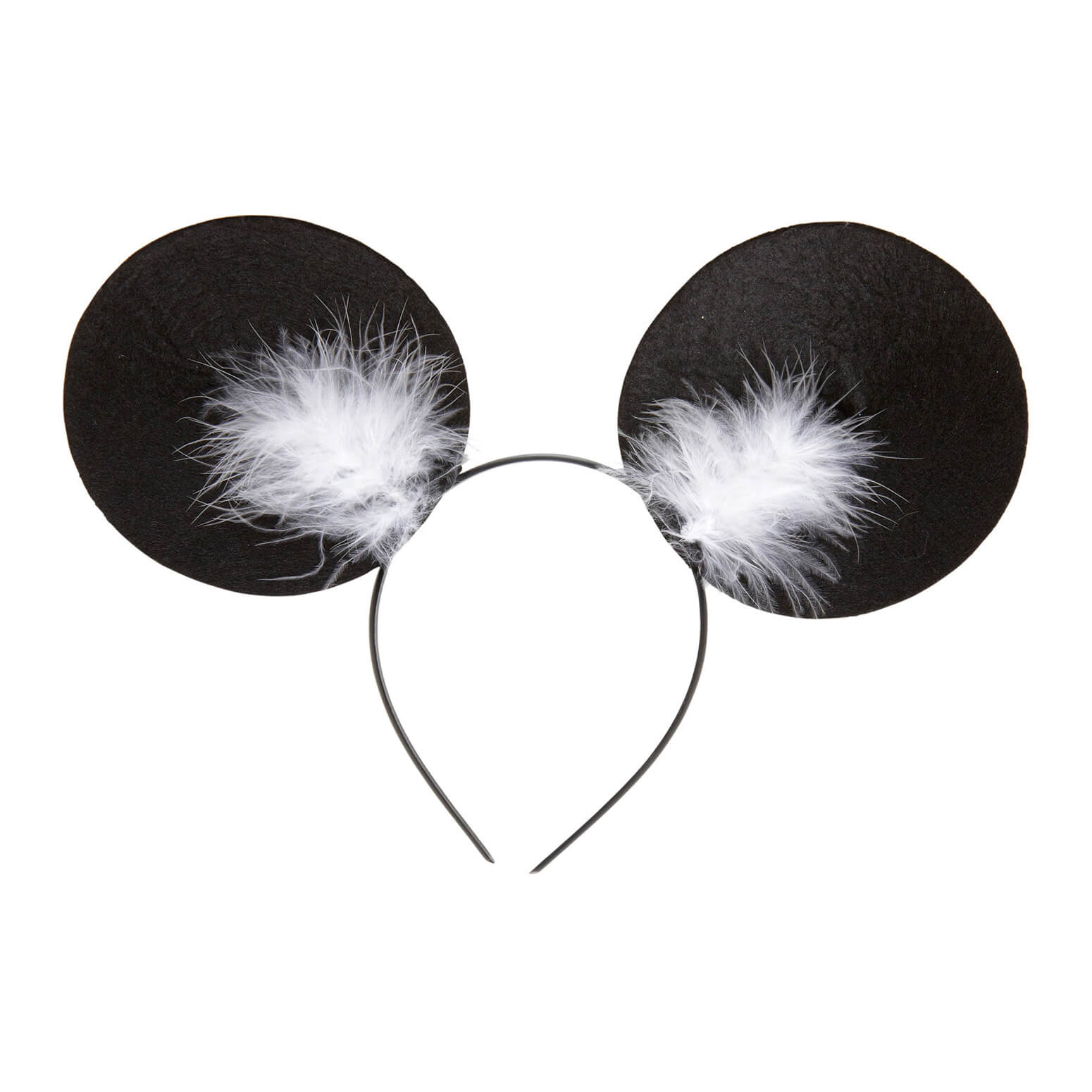 Mister Maus Haarreif mit Ohren Filz mit Marabu schwarz-weiß