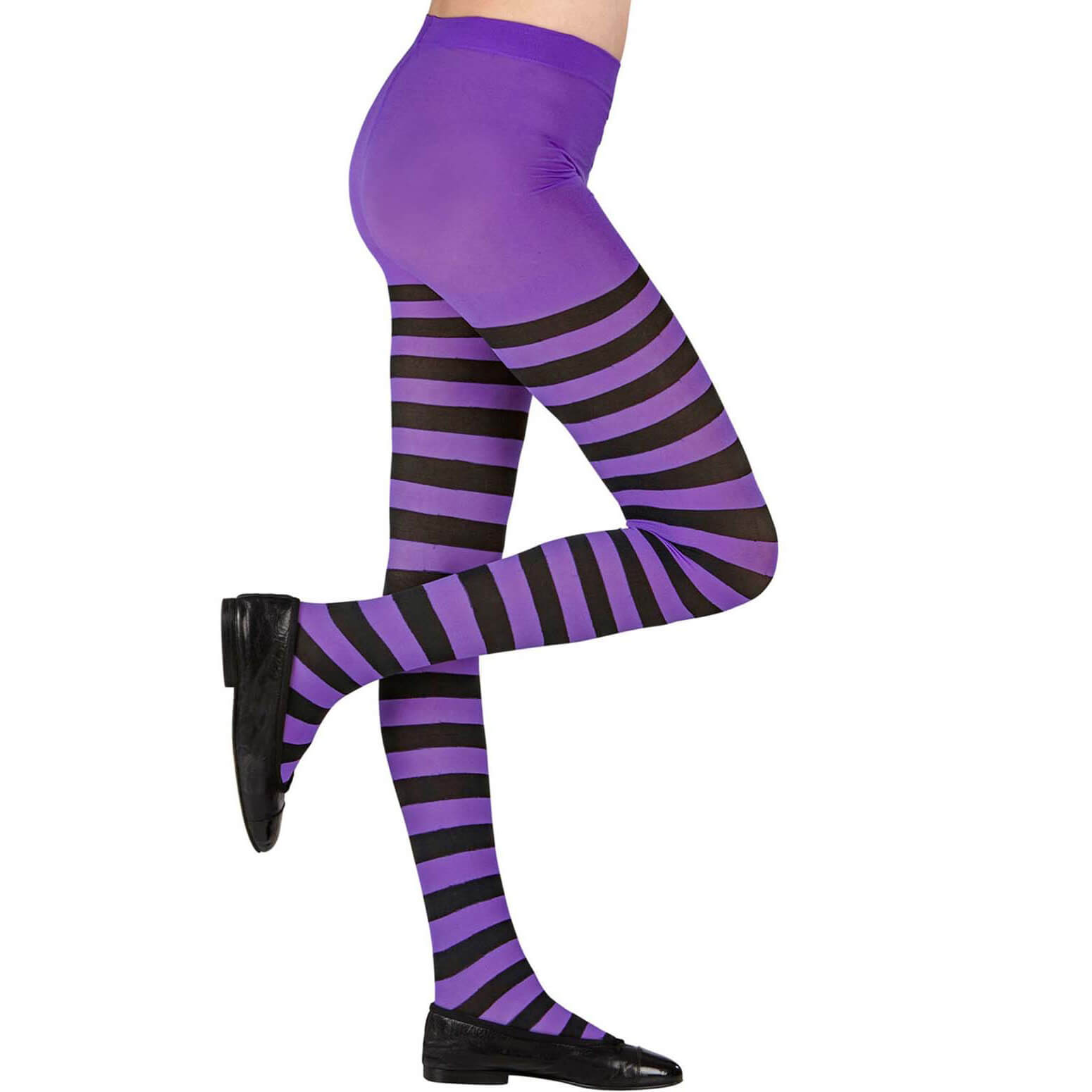 Kinderringelstrumpfhose Nylon gestreift Classic zweifarbig schwarz-lila – (ARTIKEL/REFERNZ: 8003558012190/WI01219-8003558012206/WI01220-8003558012213/WI01221-8003558012220/WI01222 – Kategorie/Suche: – Hersteller: Widmann S.r.l.)