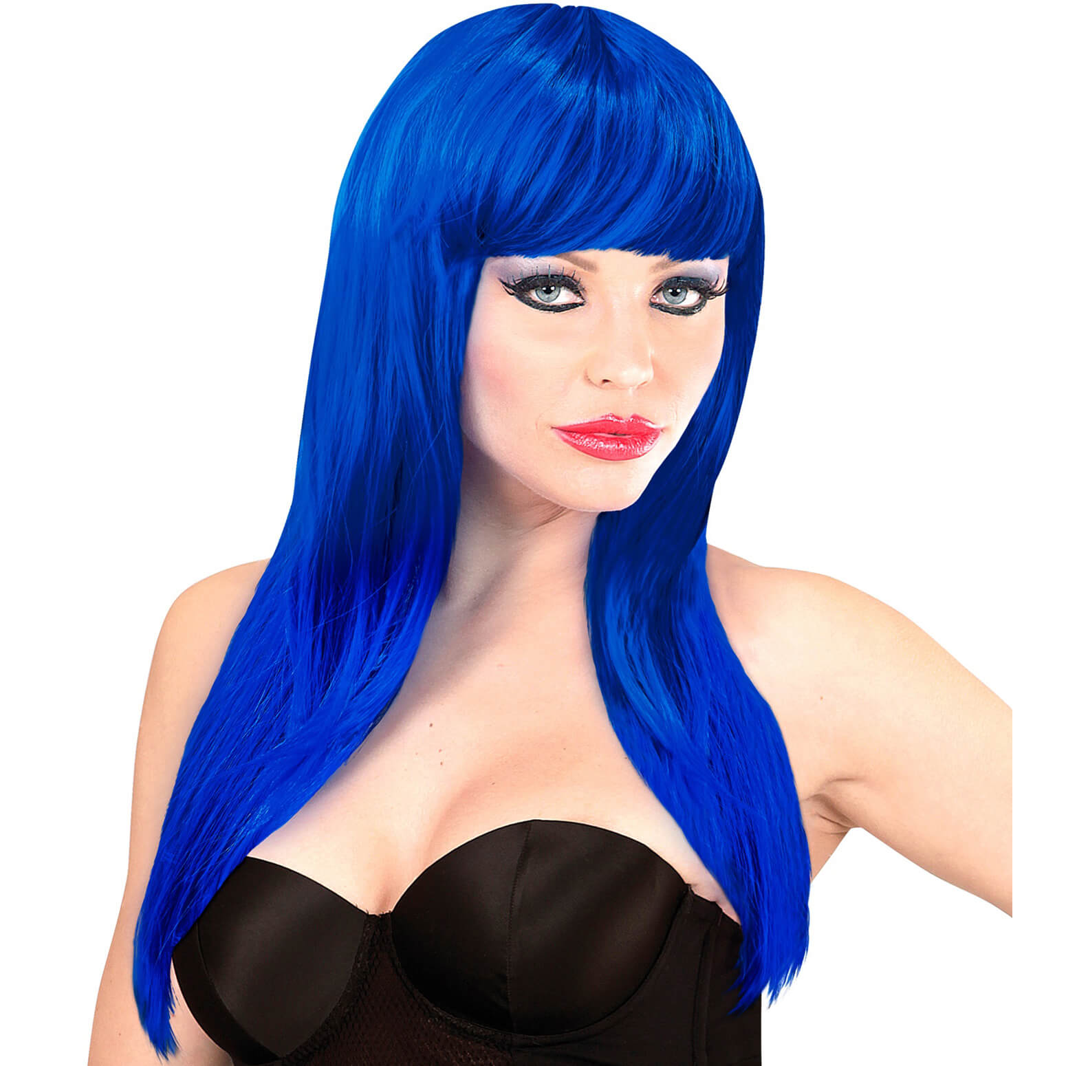 Perücke lang glatt Vogue Langhaarfrisur mit Pony einfarbig blau