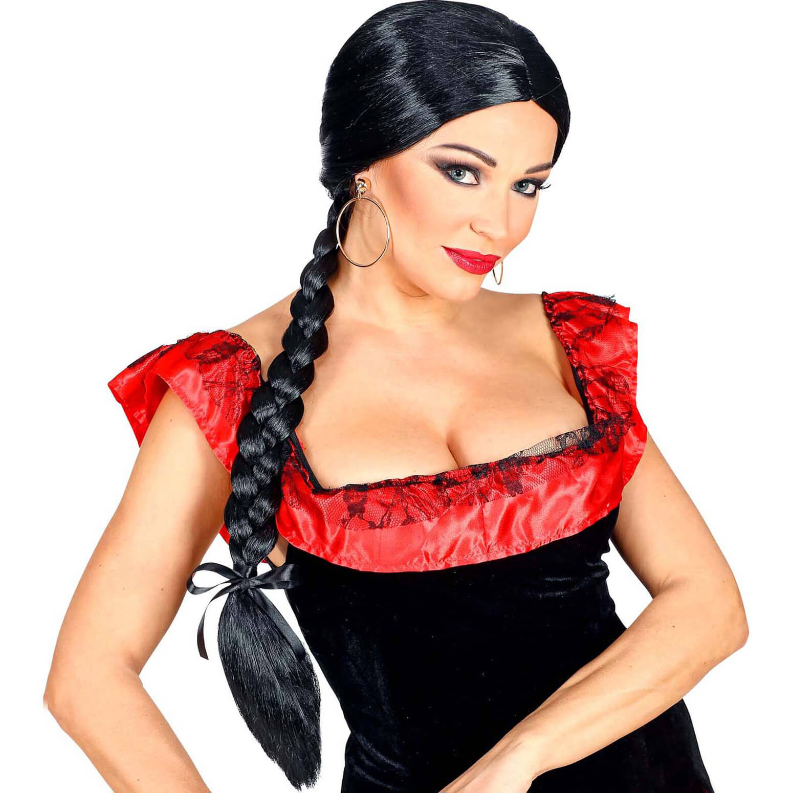 Spanierin / Mexikanerin Zopfperücke ein Zopf Senorita Langhaarfrisur geflochtener Zopf schwarz