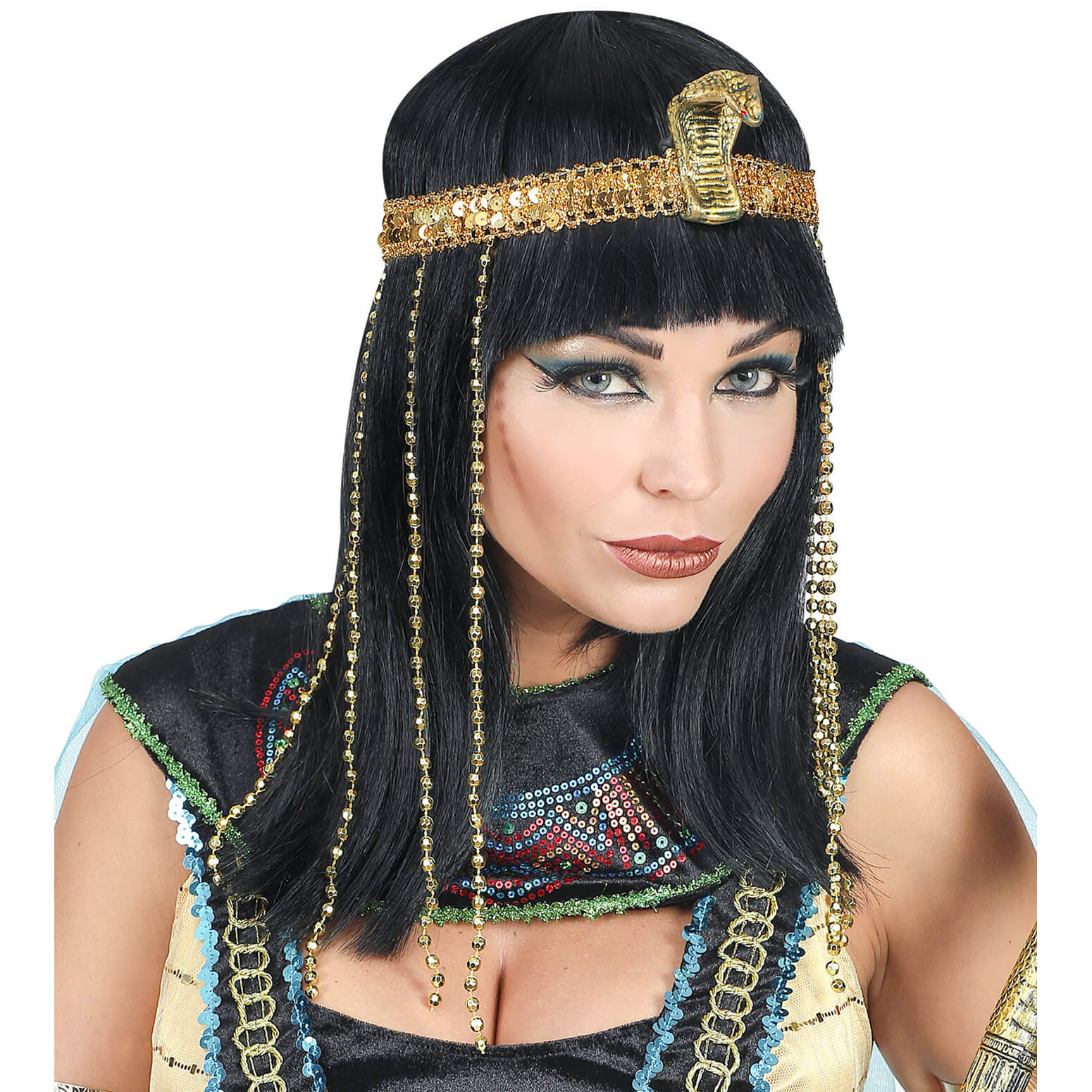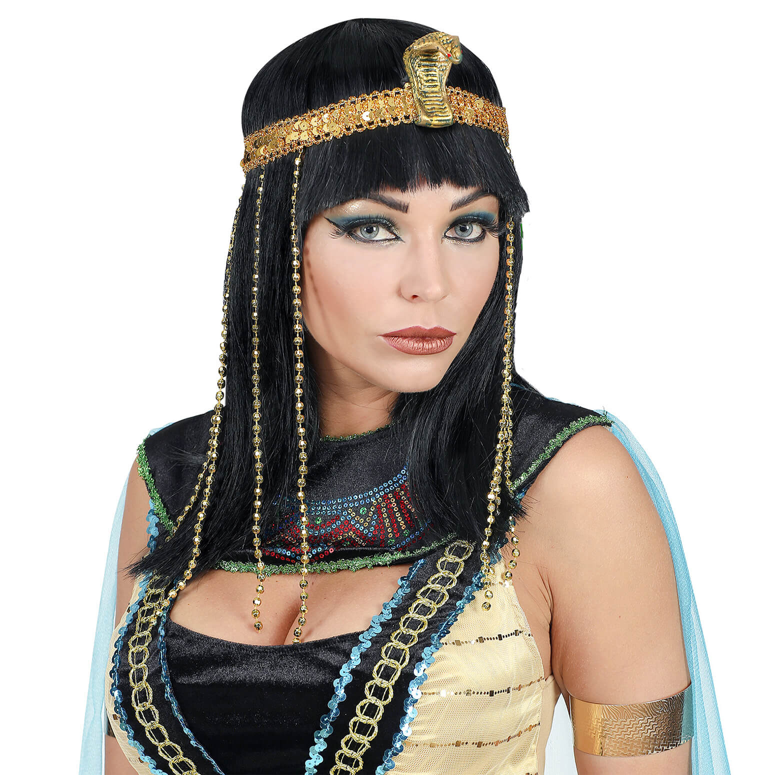 Cleopatra/Indianer Perücke lang glatt+Stirnband Äg. Langhaarfrisur mit Pony goldene Perlenschnüre Schlange schwarz – (ARTIKEL/REFERNZ: 8003558020898/WI02089 – Kategorie/Suche: Asterix und Obelix – Hersteller: Widmann S.r.l.)