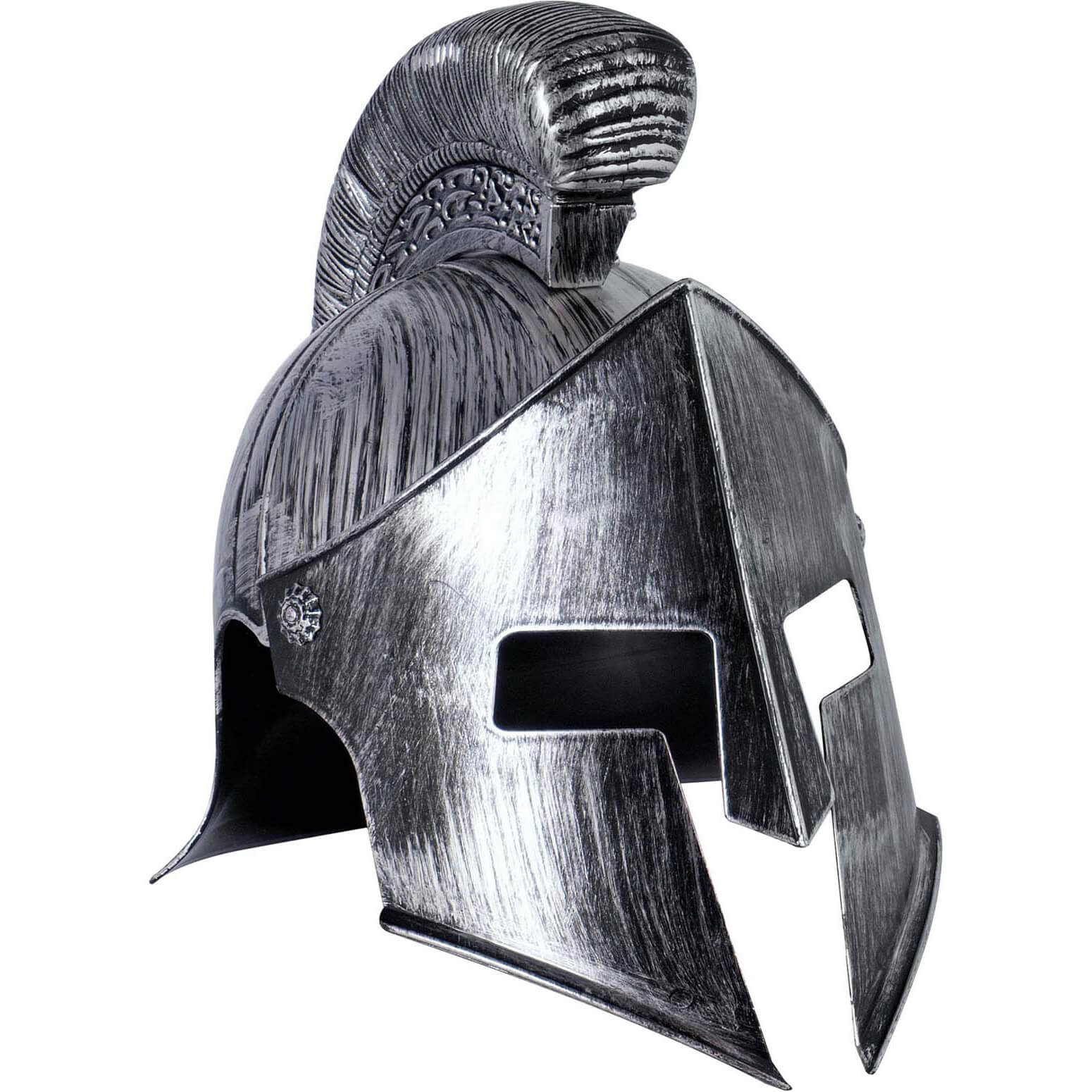 Gladiator Legionär Helm mit Visier und anged. Federaufsatz Kunststoff Hartplastik Spartanerhelm silber