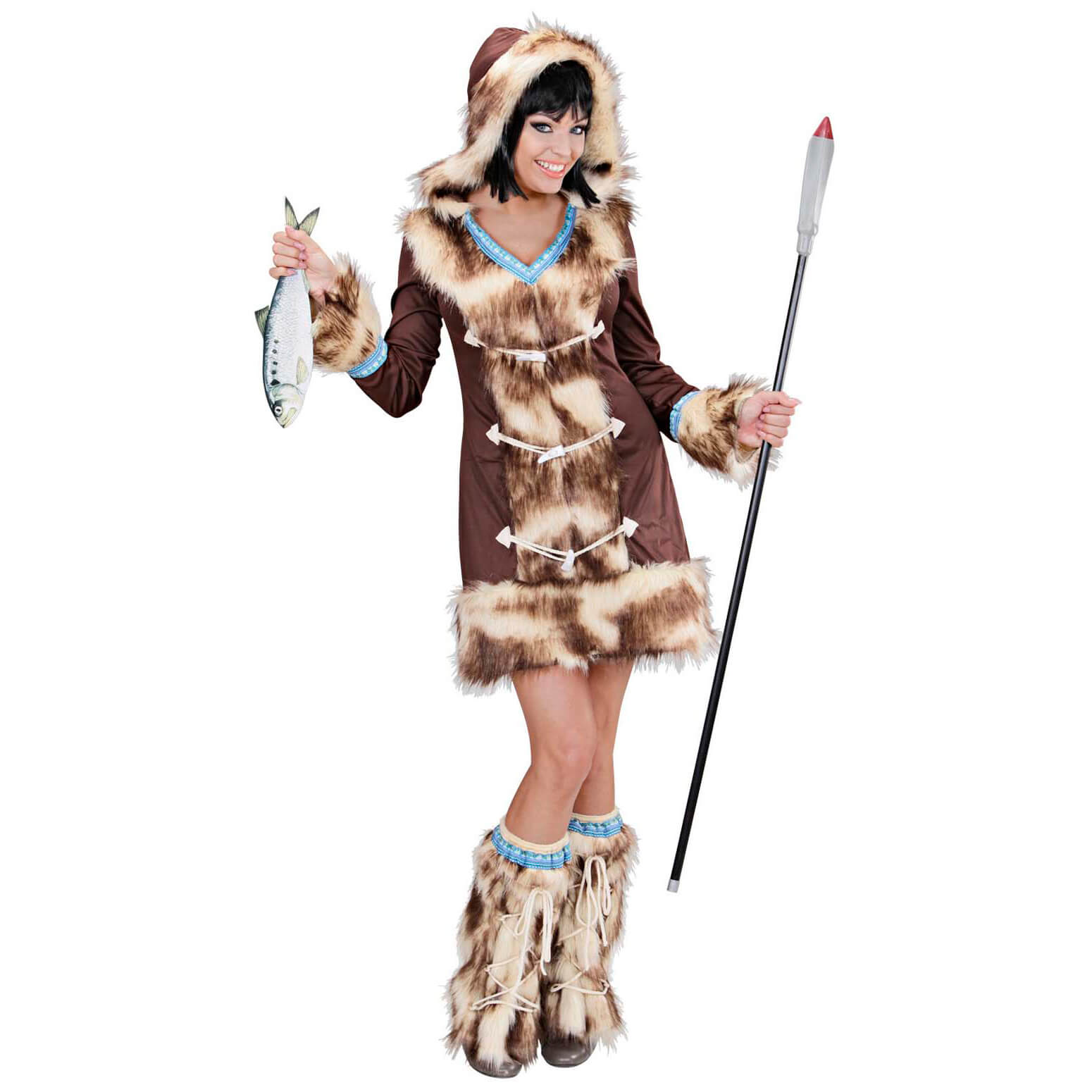 Inuit Eskimodame Kostüm Kleid kurz Aikaa mit Plüsch dunkelbraun-hellbraun – (ARTIKEL/REFERNZ: 8003558024315/WI02431-8003558024322/WI02432 – Kategorie/Suche: – Hersteller: Widmann S.r.l.)