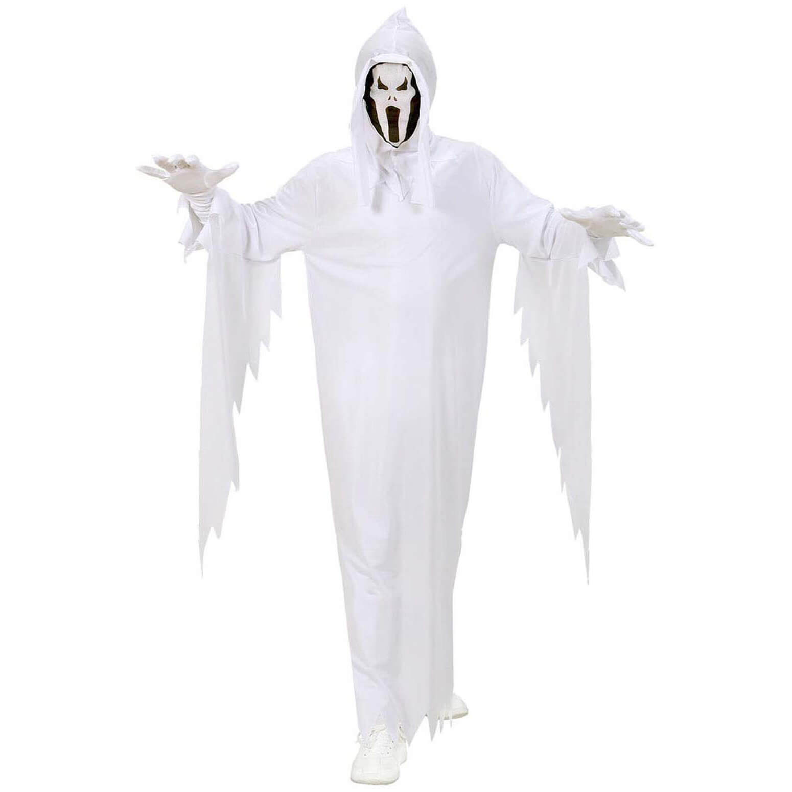 Geist Kinderkostüm Robe Tunika lang Gespenst mit Maske und Kapuze weiß
