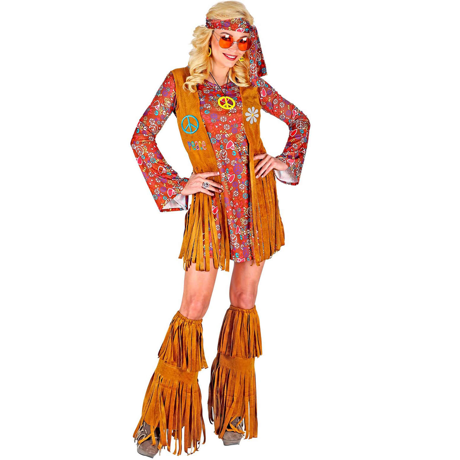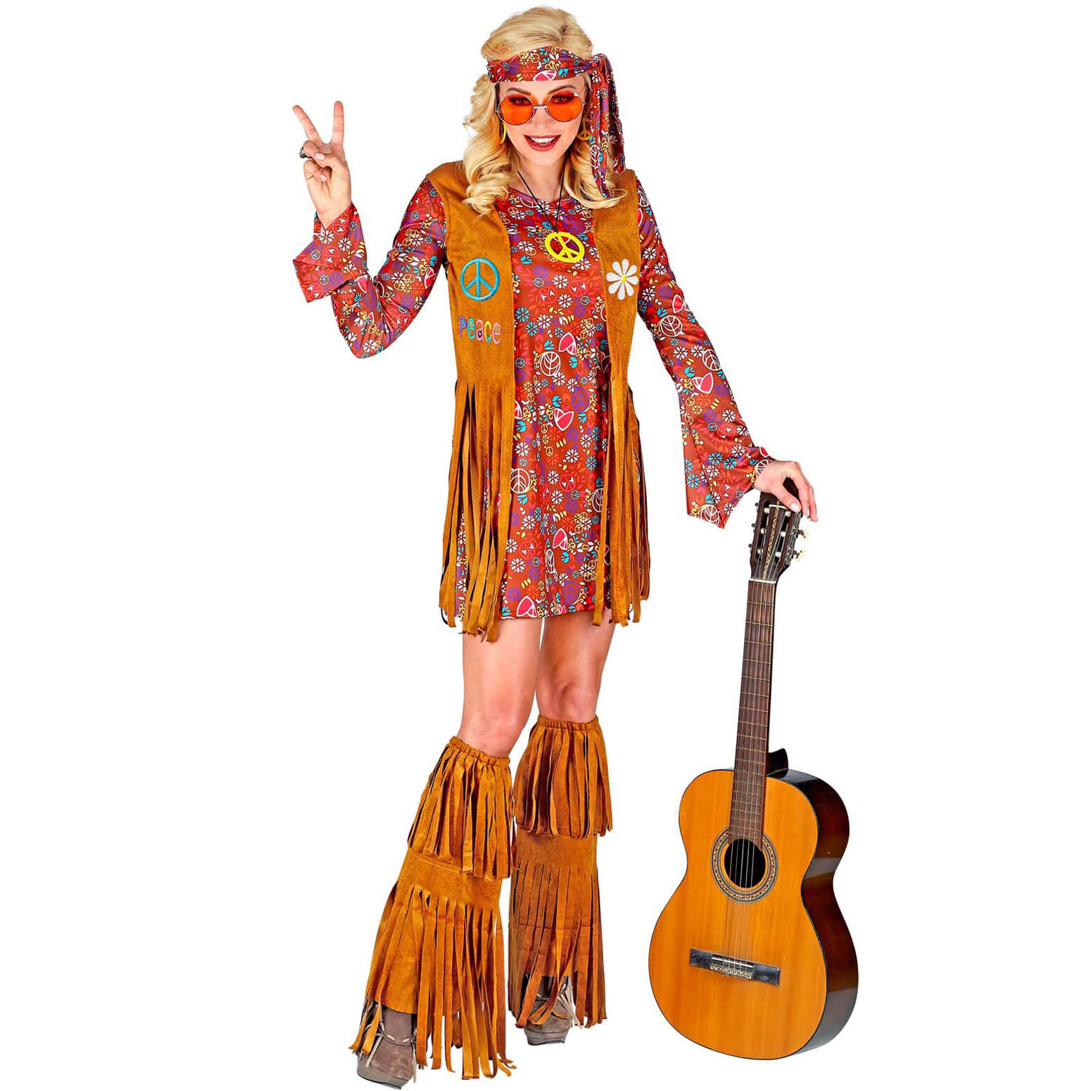 70er Jahre Hippiegirl Kostüm Kleid kurz in Wildlederoptik mit Fransen an den Hosenschlägen braun-bunt – (ARTIKEL/REFERNZ: 8003558028696/WI02869-8003558028610/WI02861-8003558028627/WI02862-8003558028641/WI02864 – Kategorie/Suche: – Hersteller: Widmann S.r.l.)