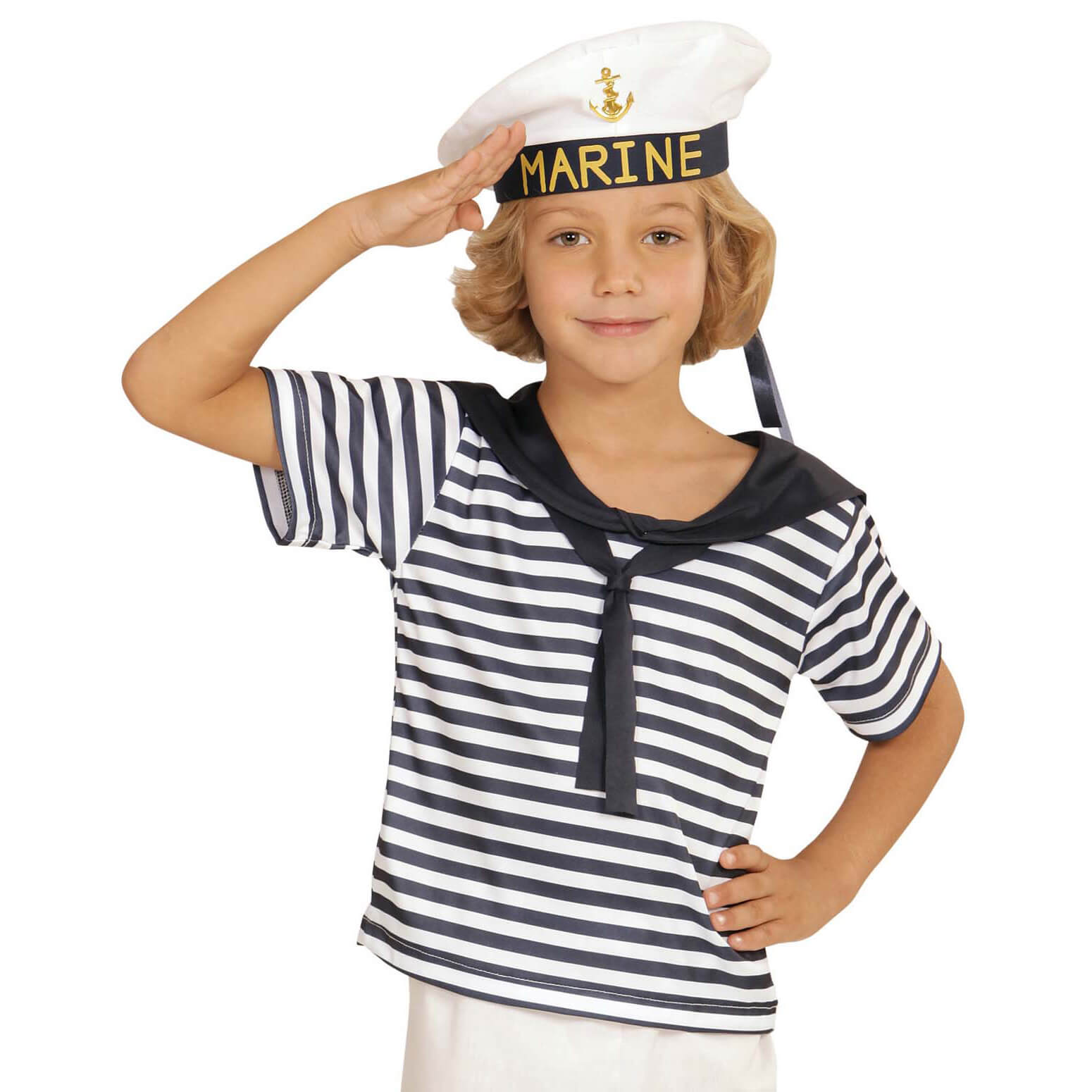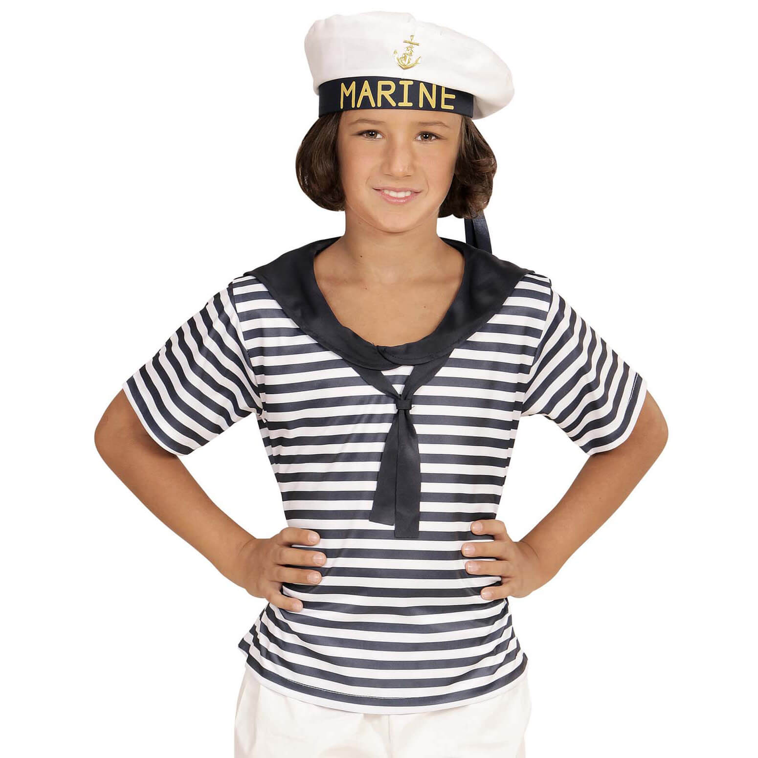 Matrose Kinderkostüm Teile-Set Marine Set Shirt und Hut blau-weiß – (ARTIKEL/REFERNZ: 8003558031146/WI03114-8003558031153/WI03115-8003558031160/WI03116-8003558031177/WI03117-8003558031184/WI03118 – Kategorie/Suche: – Hersteller: Widmann S.r.l.)