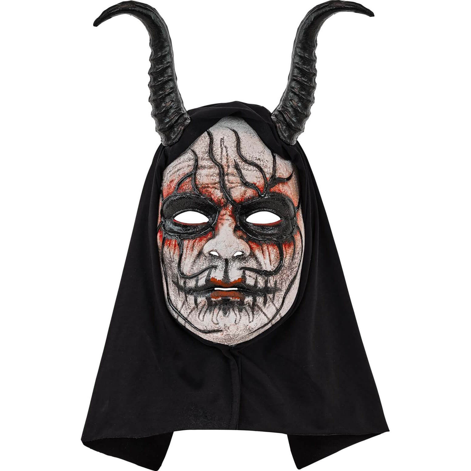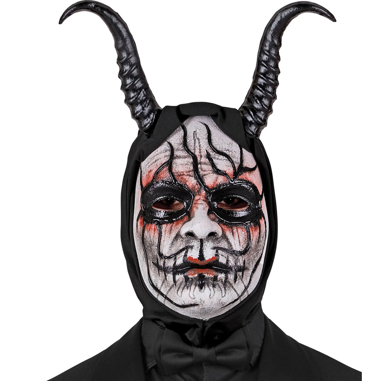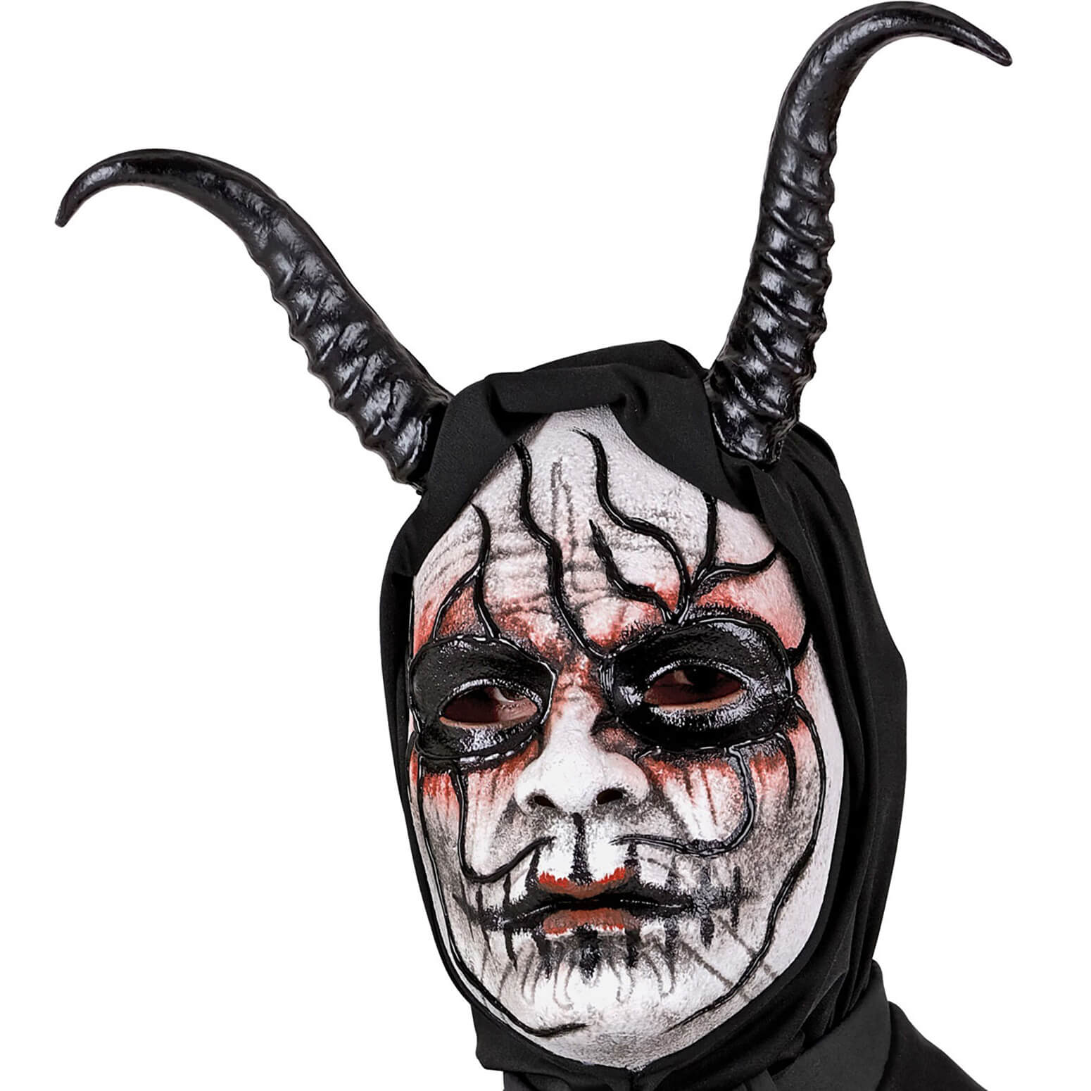 Teufel/Dämon Maske mit Hörnern Halbmaske COMMEDIA DELL ARTE Teufelsmaske Kapuze schwarz mit weiß-rot – (ARTIKEL/REFERNZ: 8003558032259/WI03225 – Kategorie/Suche: – Hersteller: Widmann S.r.l.)