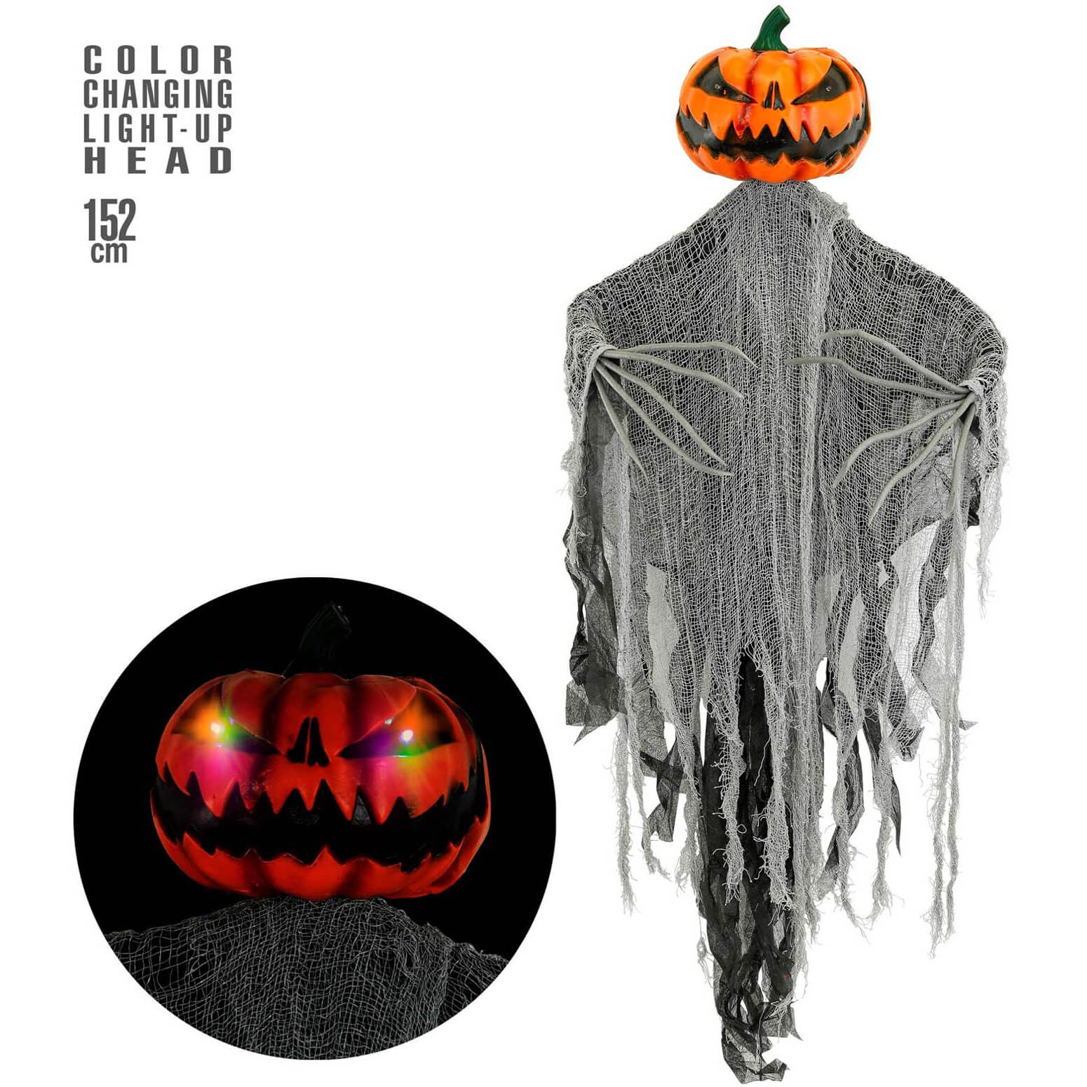 Kürbismann gruselig Deko Hängefigur mit LED zum Aufspannen mit blinkenden Augen 152cm grau-orange – (ARTIKEL/REFERNZ: 8003558032419/WI03241 – Kategorie/Suche: – Hersteller: Widmann S.r.l.)