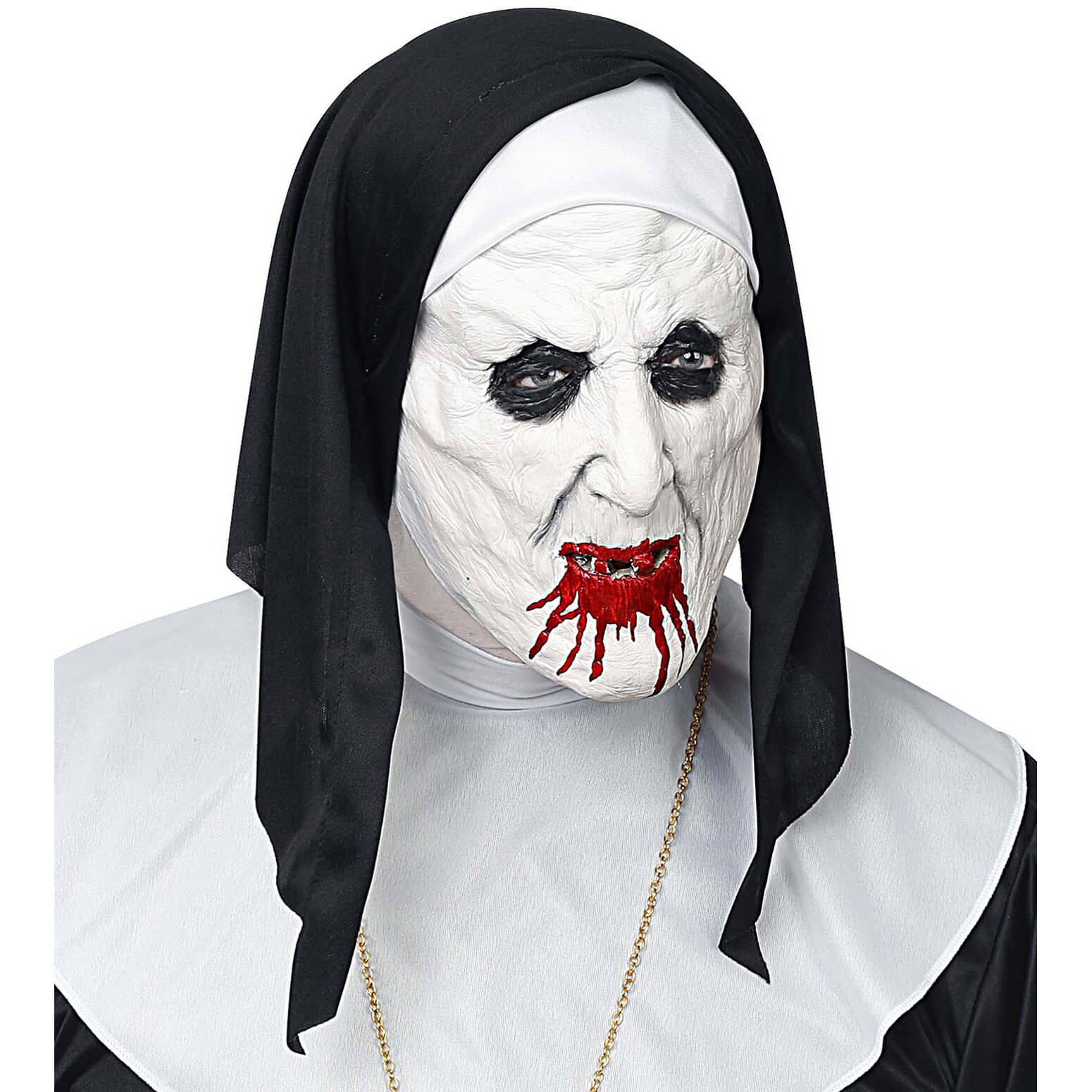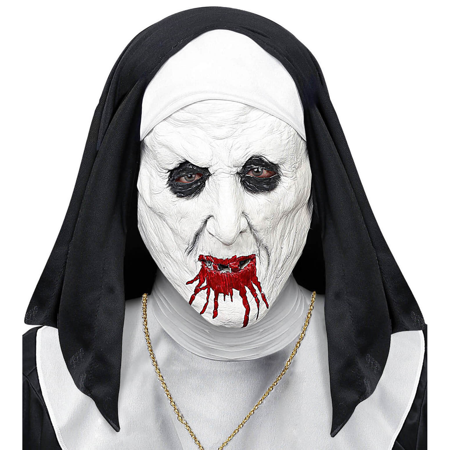 Horror Nonne Latexmaske mit Kopftuch Nonnenhaube und blutiger Mund schwarz-weiß – (ARTIKEL/REFERNZ: 8003558032914/WI03291 – Kategorie/Suche: The Nun – Hersteller: Widmann S.r.l.)