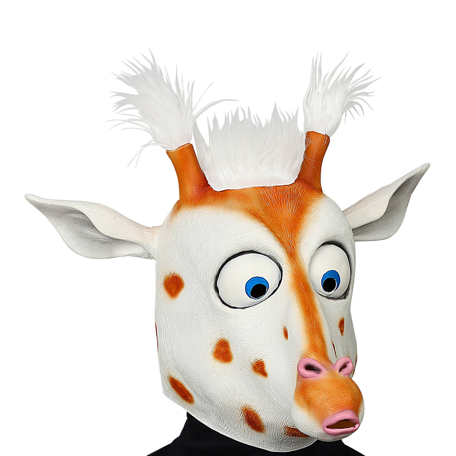 Giraffe Latexmaske Vollmaske mit Plüschmähne und Riesenaugen hellbraun-weiß