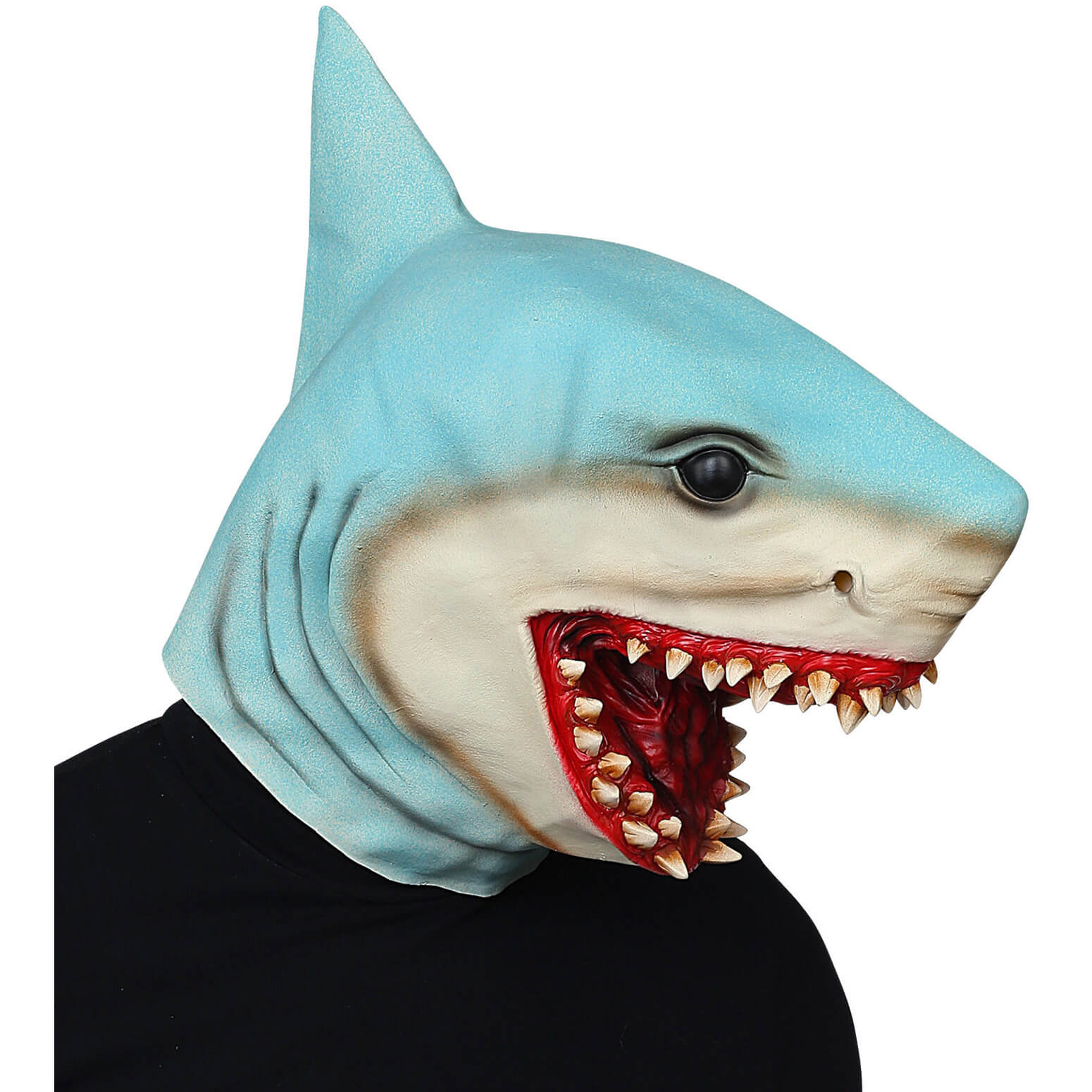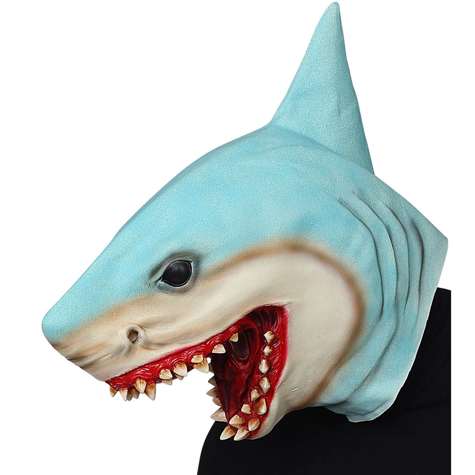 Wassertier Fisch Hai Latexmaske Vollmaske mit scharfen Zähnen Killerhai hellblau-weiß