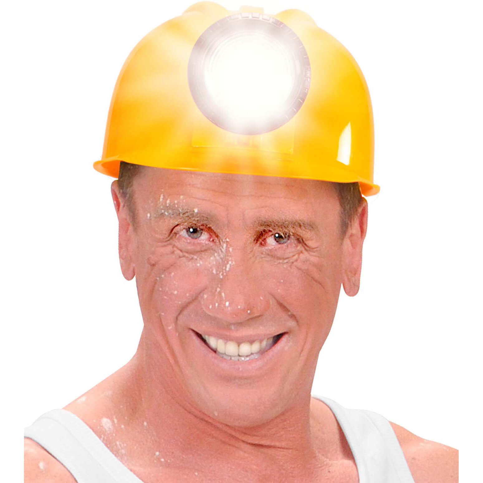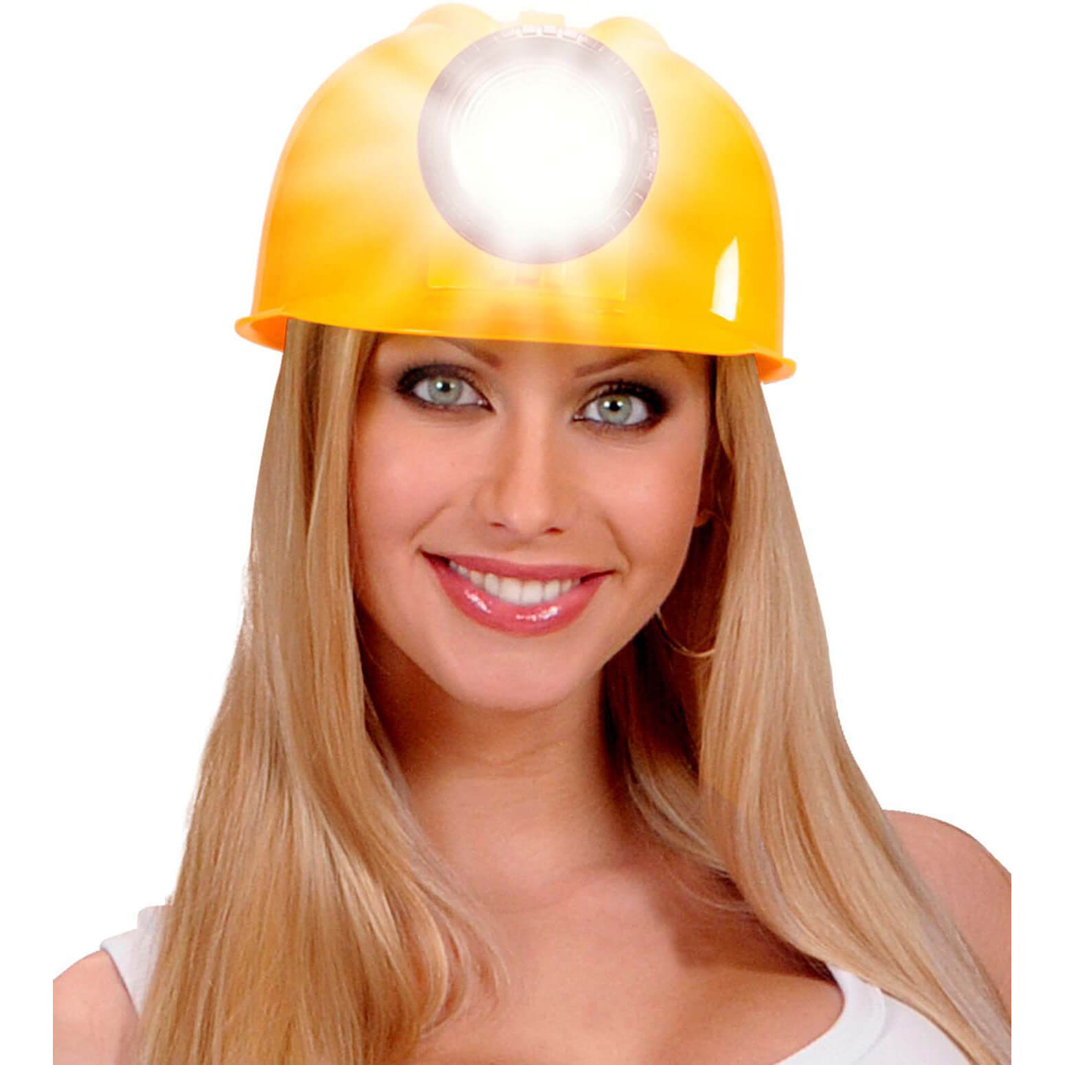 Bauarbeiter Helm mit Lampe LED aus Kunststoff Hartplastik MIT LICHT gelb